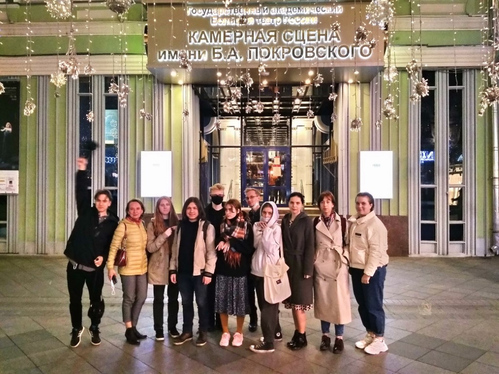 7 мая 2021 года студенты 1-го и 3-го курсов образовательной программы «Зарубежная филология», изучающие немецкий язык как основной, под руководством преподавателей М.В. Ополовниковой, И.В. Кокуриной и И.А. Комиссаровой совершили поездку в Москву, во время которой посетили Третьяковскую галерею и Камерную сцену Большого театра.