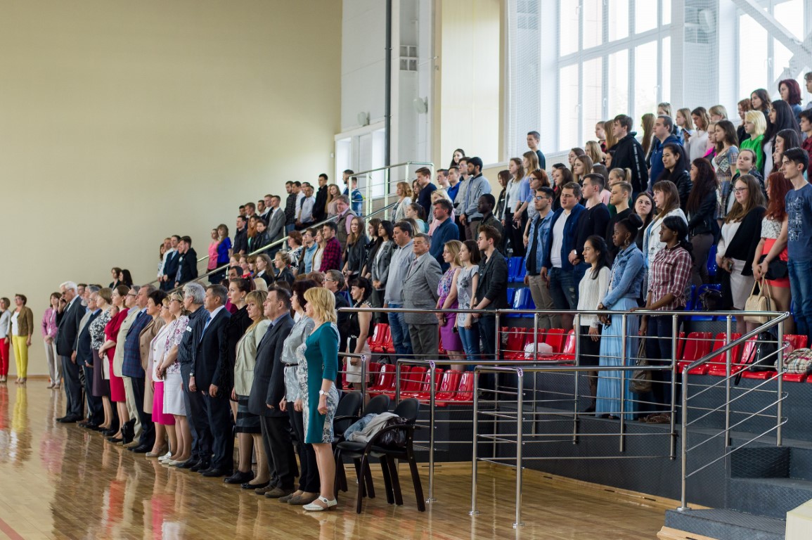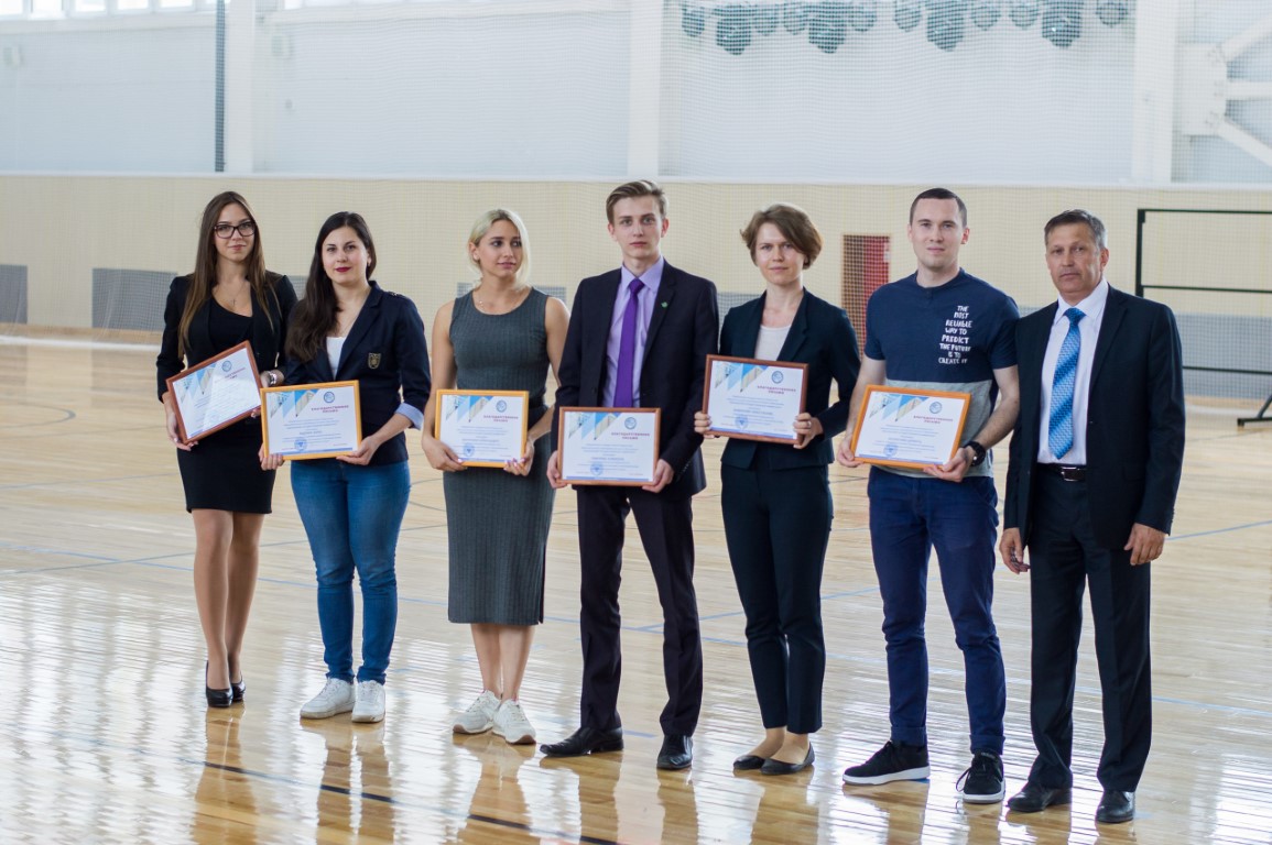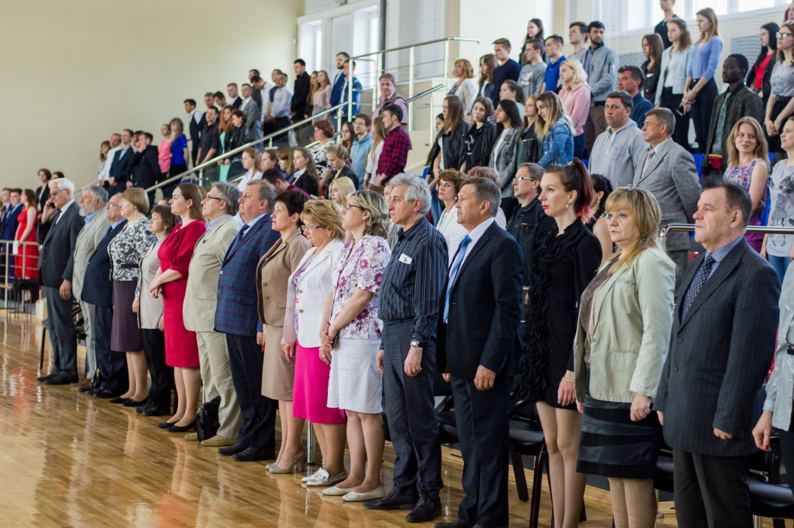 Открывался праздник парадом сборных команд, в котором участвовали лучшие спортсмены нашего вуза. Ключевым моментом мероприятия стало вручение ректором В.Н. Егоровым кубков и дипломов командам-победителям и призерам Спартакиады. В этом году кубок за третье место завоевал биолого-химический факультет. На втором месте – экономический факультет. А победителем (второй год подряд!) стал факультет математики и компьютерных наук. Традиционно на этом празднике вручаются благодарственные письма спортсменам-выпускникам, которые защищали честь нашего университета на соревнованиях самого разного уровня на протяжении всех лет обучения в вузе. В этом году количество выпускников было рекордным – 38 человек. Среди них мастер спорта, чемпион мира по спортивному ориентированию Сергей Шалин; мастер спорта, финалистка Кубка мира по плаванию Александра Шелухина; мастер спорта по карате, двукратный чемпион Европы Игорь Иванчихин – и многие другие. Очень насыщенной была концертная программа праздника. Перед зрителями и участниками торжества выступили школа танца “L’street”, школа спортивного танца и чир-спорта «Задор», театр спорта «Дебют», а также бессменные участники всех спортивных праздников нашего вуза, неоднократные чемпионы областной Спартакиады – сборная команда университета по аэробике.