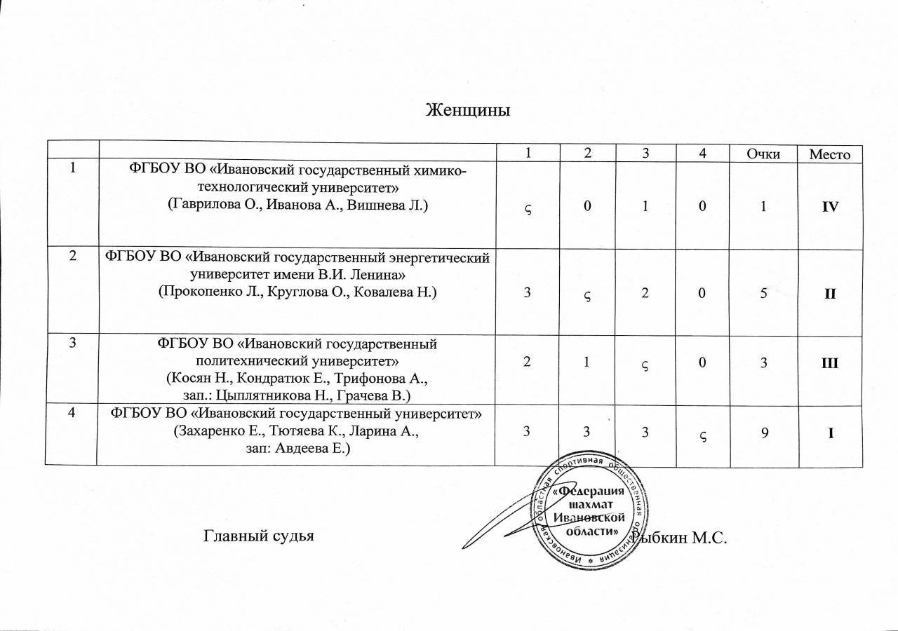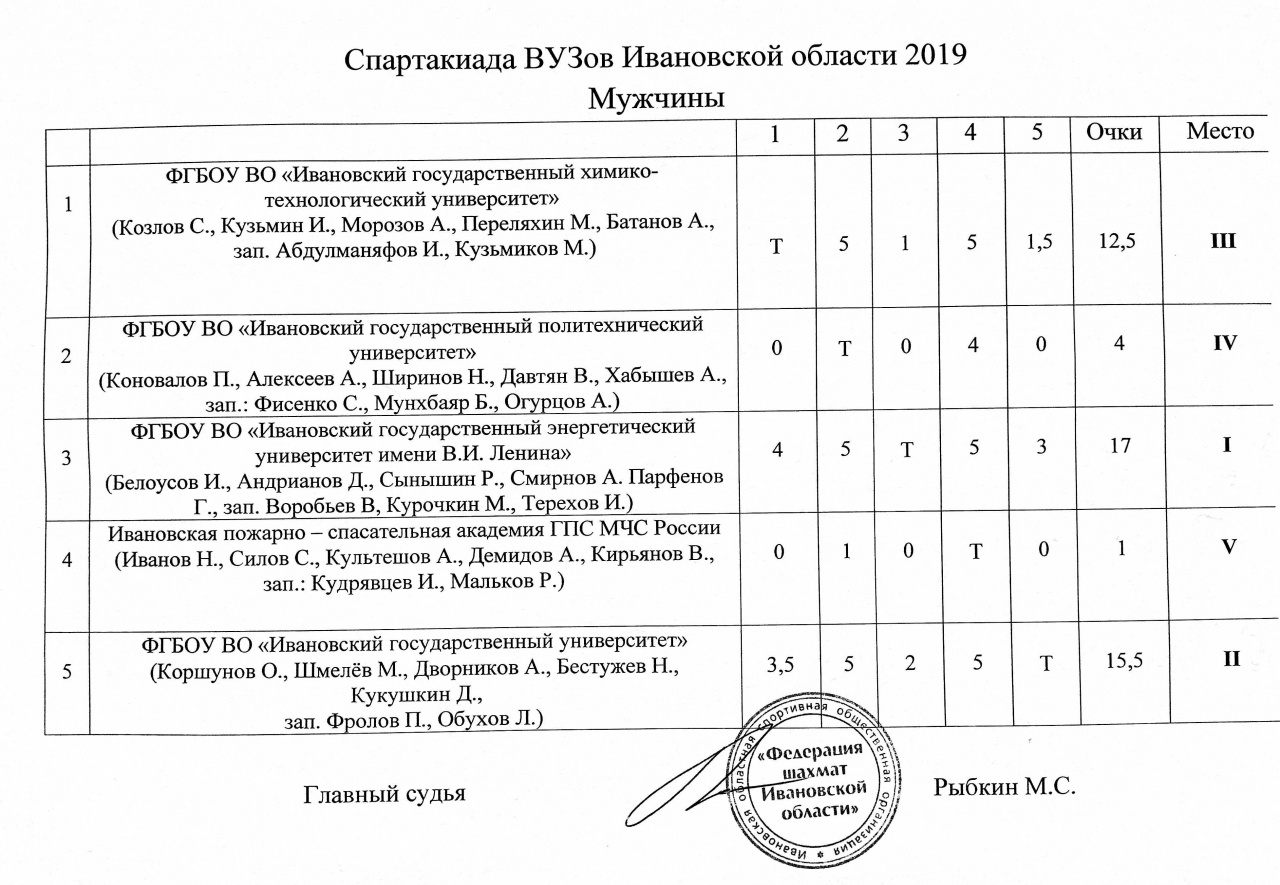 7 мая 2019 года состоялись соревнования по быстрым шахматам. Мероприятие проходило на базе Ивановского государственного энергетического университета. Спасибо энергетикам за теплый прием, а также департаменту спорта Ивановской области и областной шахматной федерации за организацию. Итоги приводятся ниже в таблицах. Отдельное спасибо шахматистам сборной команды ИвГУ – за успешное выступление!