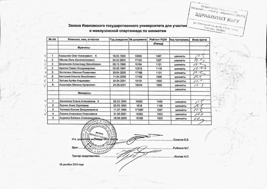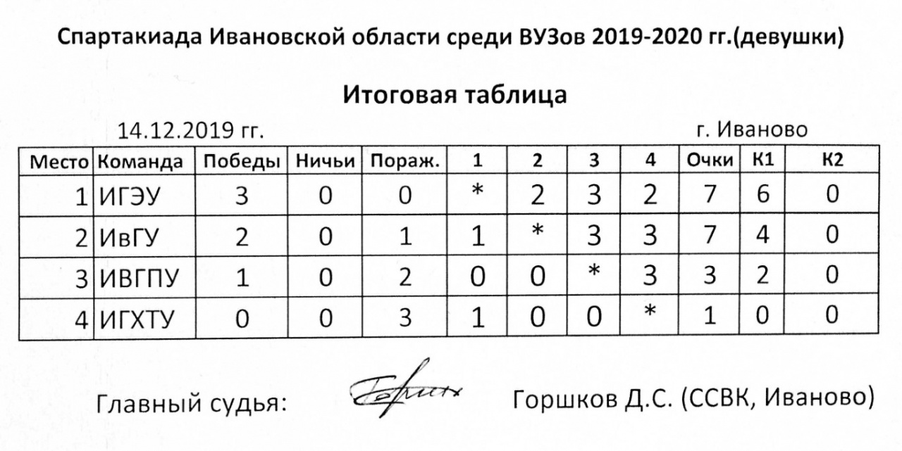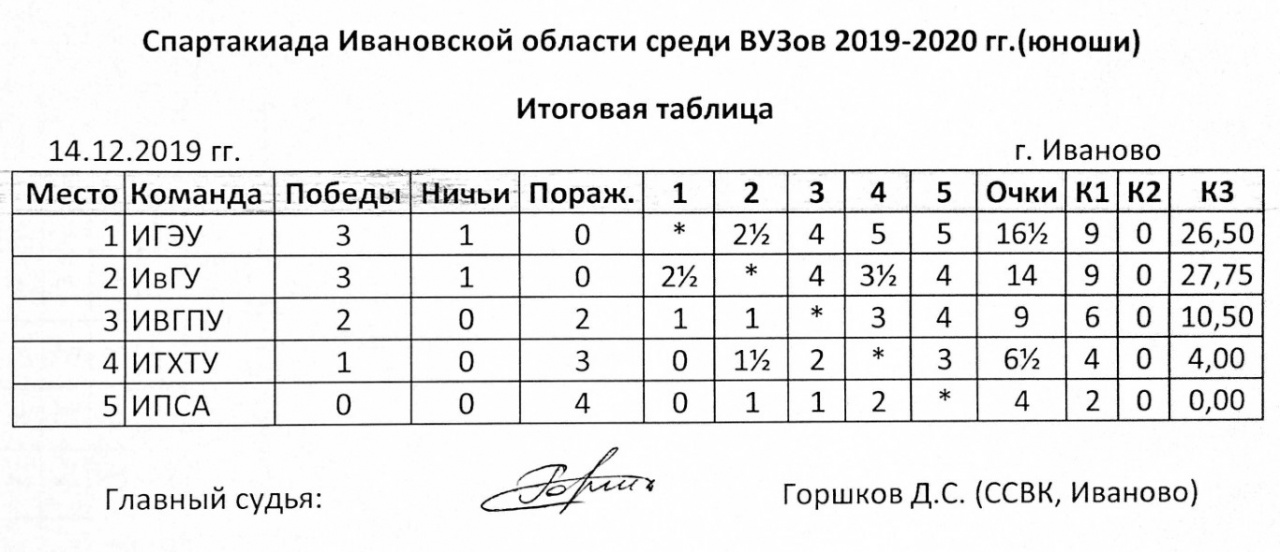 14 декабря 2019 года в политехническом университете прошел турнир по быстрым шахматам в рамках спартакиады вузов Ивановской области.