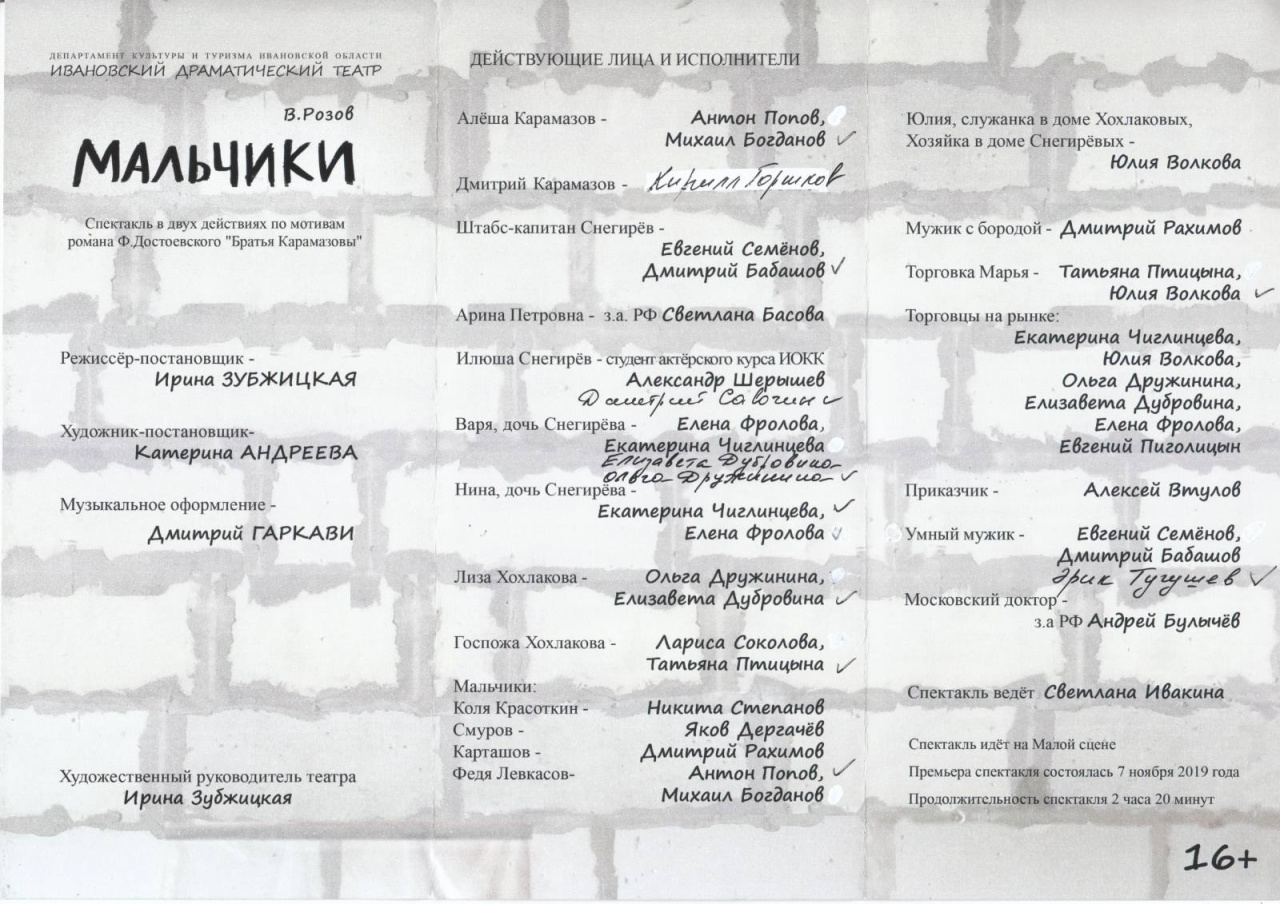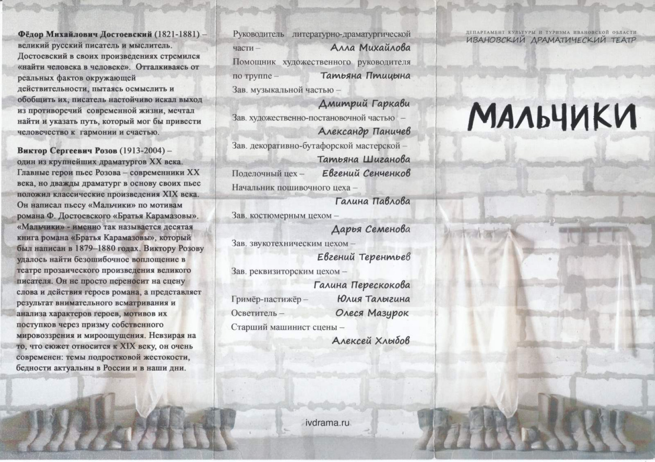 2 декабря студенты 3-го курса Института гуманитарных наук направления подготовки «Отечественная филология» вместе с преподавателями посетили спектакль «Мальчики», приуроченный к 200-летию Ф.М. Достоевского и поставленный в стенах Ивановского драматического театра. Это был невероятный эмоциональный опыт сопереживания, проживания истории вместе с ее героями, который был получен благодаря тому, что зрительские места находились на расстоянии вытянутой руки от актеров, что позволило почувствовать себя практически соучастником демонстрируемых событий.