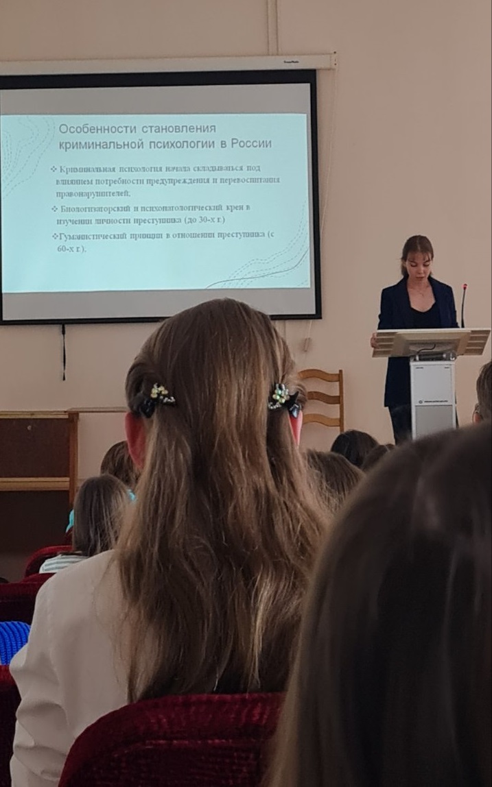 На конференции выступили с докладами и наши студентки: Крюкова Екатерина (3-й курс), Курлапова Ольга и Горбунова Анастасия (2-й курс). Научный руководитель – канд. псих. наук, доцент Прошек М.М. Тематика докладов: «Арт-терапия как форма коррекции эмоционального состояния» (Крюкова Е.); «Теория “Я-концепция” в современных условиях» (Горбунова А.); «Вклад отечественных ученых в развитие криминальной психологии» (Курлапова О.). Екатерина Крюкова награждена Дипломом III-й степени.