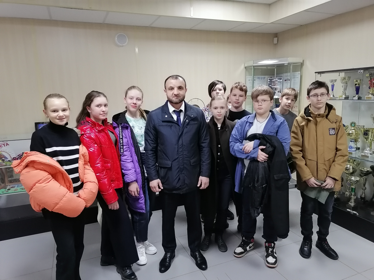 Путь к месту назначения проходил мимо спорткомплекса ИвГУ, где в тот момент как раз готовились к спортивному празднику. Пройти мимо было выше человеческих сил. Школьники не только увидели большой зал спорткомплекса, университетских спортсменов, выставку их призов и стенгазет, но и познакомились с ведущими тренерами кафедры физической культуры и безопасности жизнедеятельности ИвГУ: побеседовали с мастером спорта России по самбо доцентом Ксенией Александровной Кумировой и с основателем и президентом Федерации тайского бокса (муай-тай) Ивановской области, доцентом Айгубовым Нариманом Магомедовичем.