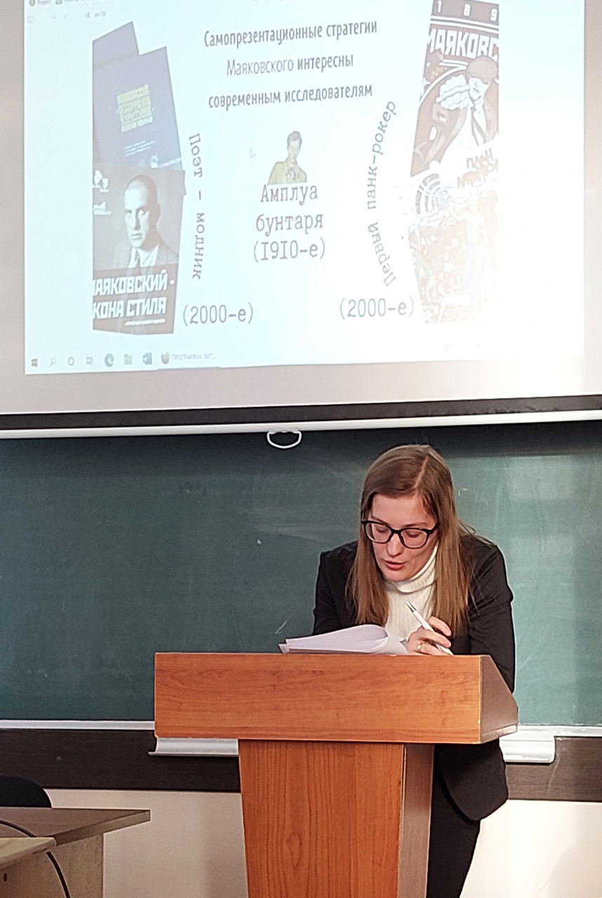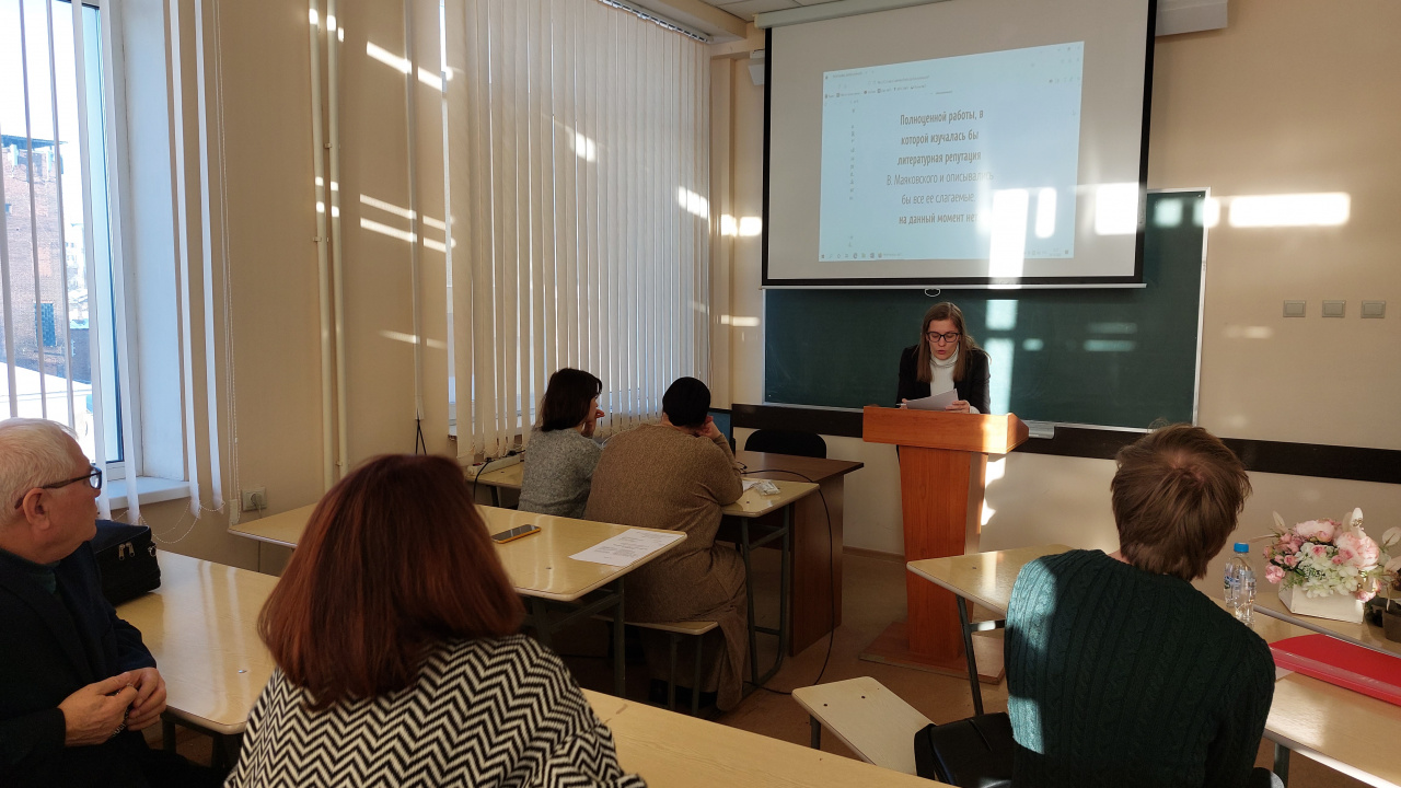 Комолова Алёна Сергеевна защитила диссертацию по теме «Программа литературной самопрезентации В.В. Маяковского». Научный руководитель: доктор филологических наук, профессор кафедры отечественной филологии Тюленева Елена Михайловна.
