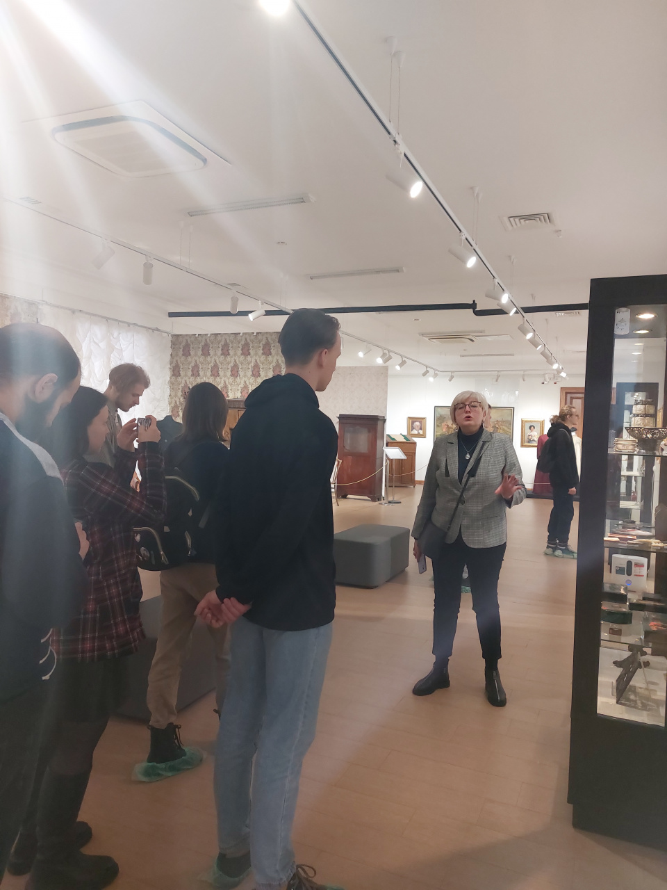 Во время осмотра экспозиций студенты беседовали с сотрудниками, которые приоткрыли для них тайны подготовки экспозиций, разъяснили концептуальные задумки авторов, обратили внимание на методики проведения экскурсий, продемонстрировали приемы работы с разной аудиторией – то есть разговаривали с ними как с будущими коллегами, профессионалами.