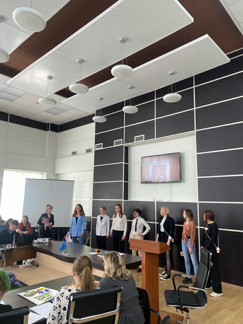 14 апреля в конференц-зале 6-го учебного корпуса ИвГУ состоялось профориентационное мероприятие – ярмарка учебных фирм «Немецкий язык для профессии и карьеры», в котором приняли участие 10 учебных фирм, представленных школьниками, учащимися колледжей и студентами вузов Ивановской области. Данное мероприятие в ИвГУ проводится ежегодно с 2018 года. Организатором конкурса является кафедра зарубежной филологии ИвГУ, координатор регионального конкурса – профессор кафедры зарубежной филологии Бабаева Р.И.