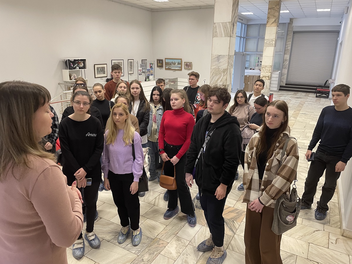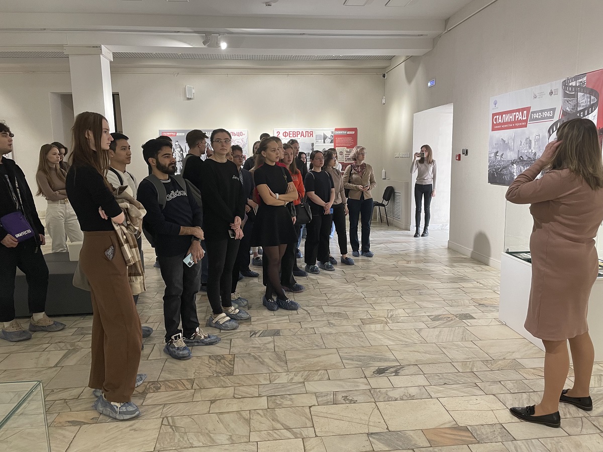 Интереснейшую экскурсию провела заведующая Музейно-выставочным центром Митрошина Анастасия Евгеньевна. Студенты познакомились с художественными произведениями, отражающими разные аспекты жизни на фронте и в тылу, смогли актуализировать свои познания по истории Сталинградской битвы. Особое впечатление произвели трогательные письма с фронта, личные вещи, медали, наградные знаки защитников Сталинграда.
