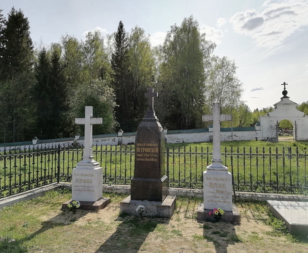 В полутора километрах от усадьбы в селе Николо-Бережки при храме святителя Николая (1792) находится семейное захоронение Островских. Нам посчастливилось поклониться праху Островского и посетить верхний (летний) храм церкви святителя Николая с барочным иконостасом XVIII века. Вокруг – чарующие пейзажи. Когда-то здесь была «хорошая охота» и «отличная рыбная ловля».