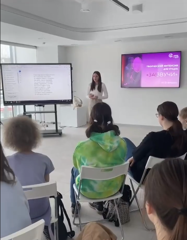 Студентка 4 курса по направлению подготовки «Журналистика» Виктория Новаковская провела мастер-класс в рамках интенсива для чтецов «Зазвучи». Он прошел на базе образовательного центра «Солярис» для одаренных детей из разных районов Ивановской области. В течение трех дней ребята занимались сценическим движением, изучали правила орфоэпии и публичного выступления.