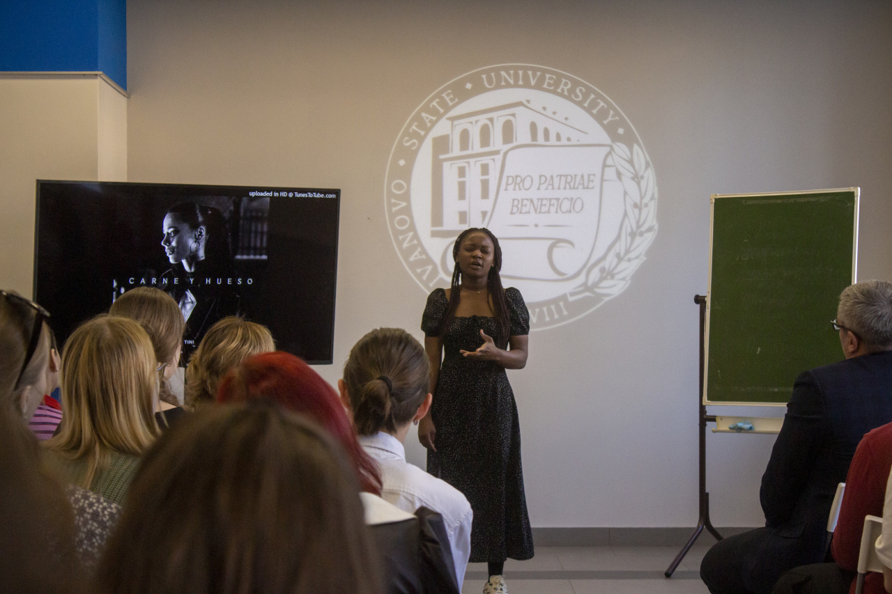 Песня «Audio vocem» («Прекрасное далёко») на латинском языке, исполненная первокурсниками – как передача эстафеты от старшего поколения студентов младшему. «Origine ex pura ad optimum futurum … iam nunc egressus sum» «От чистого истока в прекрасное далёко … я начинаю путь». На этот раз наши неизменные участники и ведущие – студентки 4 курса 2 английской группы направления «Зарубежная филология» Елизавета Напалкова, Дарья Абрамова, Полина Виноградова, а также Юлия Богачева и Валерия Пронина подготовили эту Ассамблею для нас с особым чувством, ведь этот год – завершающий в их учебе на бакалавриате ИвГУ. Пожелаем им удачи в написании и защите диплома и будем всегда рады видеть их снова!
