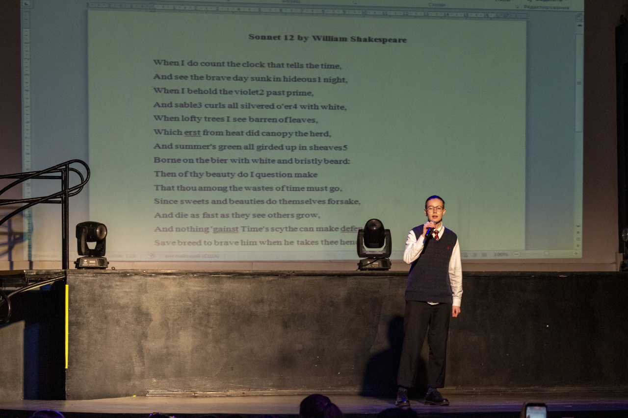 Студенты представили художественно-музыкальное исполнение сонетов великого Барда на английском, немецком, армянском, греческом, корейском и китайском языках. С каждым годом растет количество желающих продемонстрировать мастерство художественной декламации. В этом году их было более 20. Отрадно участие первокурсников, активно включившихся в проект.