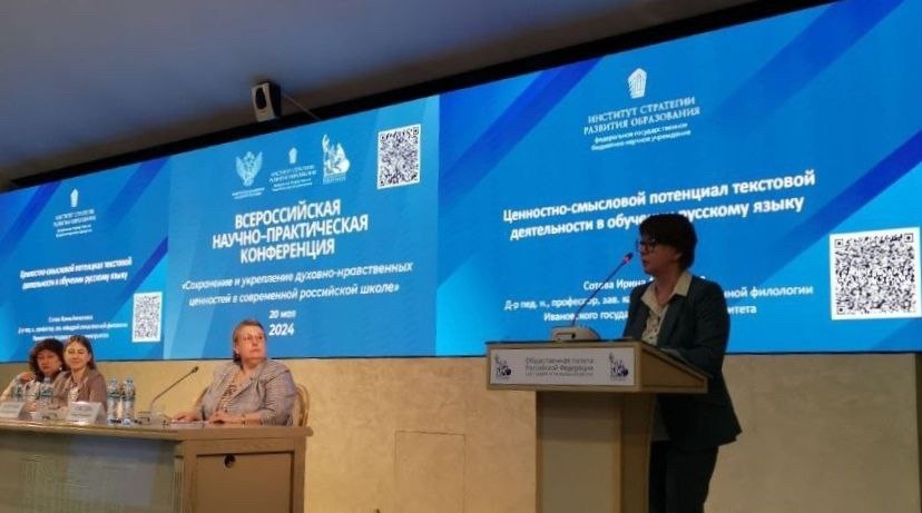 В рамках тематической сессии заведующая кафедрой отечественной филологии ИГН ИвГУ д-р пед. наук, профессор И. А. Сотова выступила с докладом на тему "Ценностно-смысловой потенциал текстовой деятельности в обучении русскому языку".