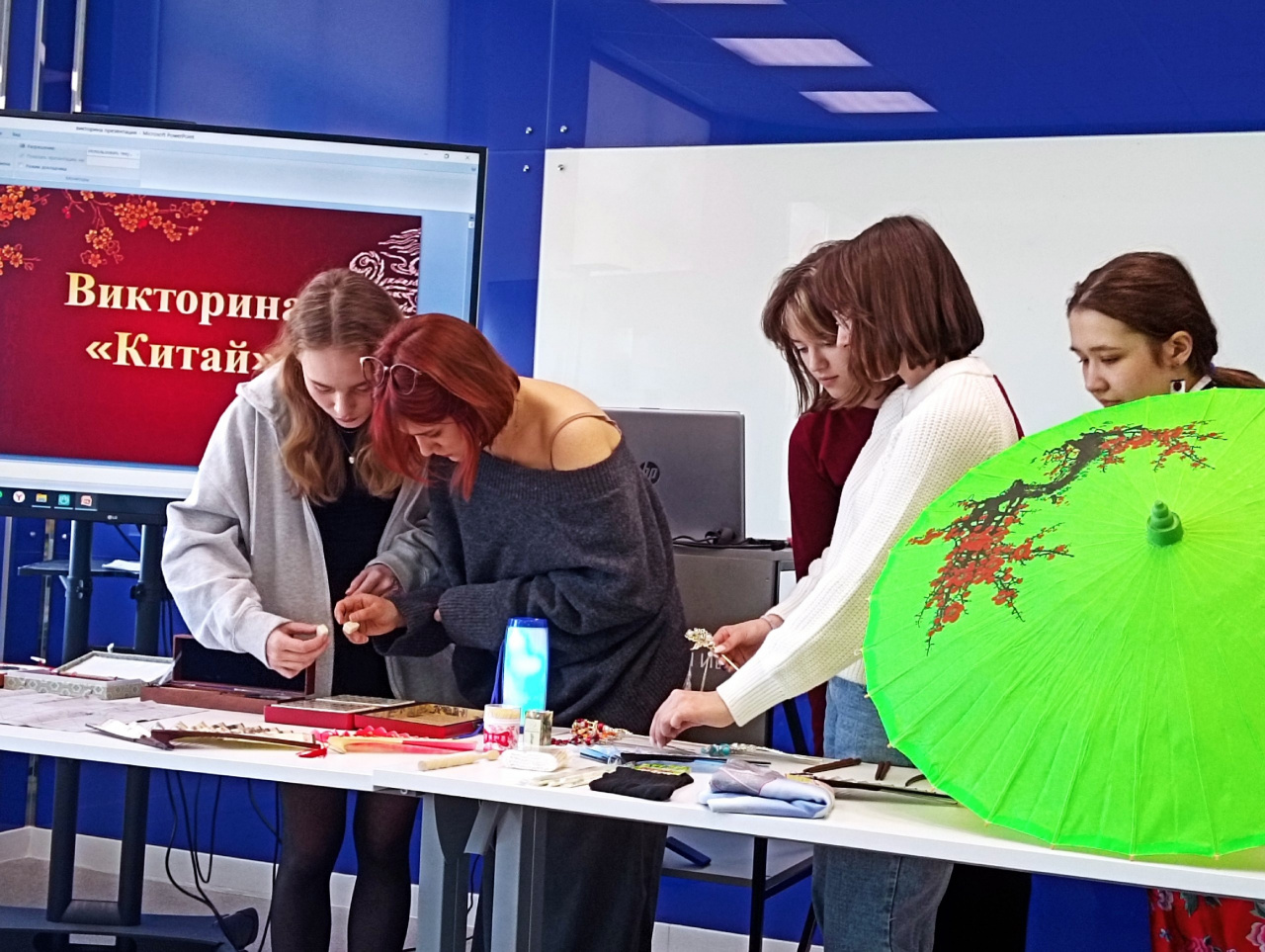 На мастер-классе по китайскому языку, который провела студентка направления «Педагогическое образование (Обучение иностранным языкам)» Элина Кадырова, участники смогли познакомиться с культурой Китая, узнать строгие правила проведения традиционной чайной церемонии, поупражняться с бамбуковыми палочками, послушать китайскую музыку и даже попробовать себя в роли каллиграфа. Тематическая викторина показала, что современная молодежь неплохо ориентируется в китаистике – ребята называли имена самых известных китайских мыслителей, угадывали культурные символы страны, объясняли различные приметы и ритуалы и т.д.