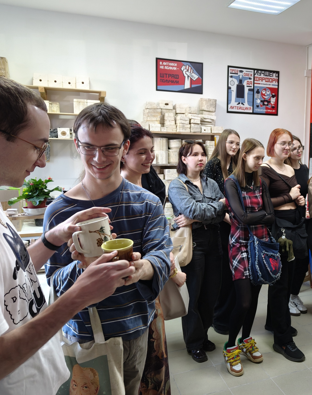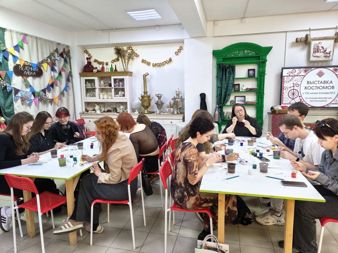 16 апреля для филологов выдался насыщенный день. Так уж сошлись звезды, что после учебных занятий студенты 2 и 3 курса направленности «Отечественная филология» до посещения великолепного концерта-спектакля Студвесны «Герои со снимков» успели побывать на выставке «По сказам ивановских текстильщиков» и экскурсии на фарфоровое производство фабрики «Моя забава», которая включала мастер-класс по росписи фарфорового колокольчика.