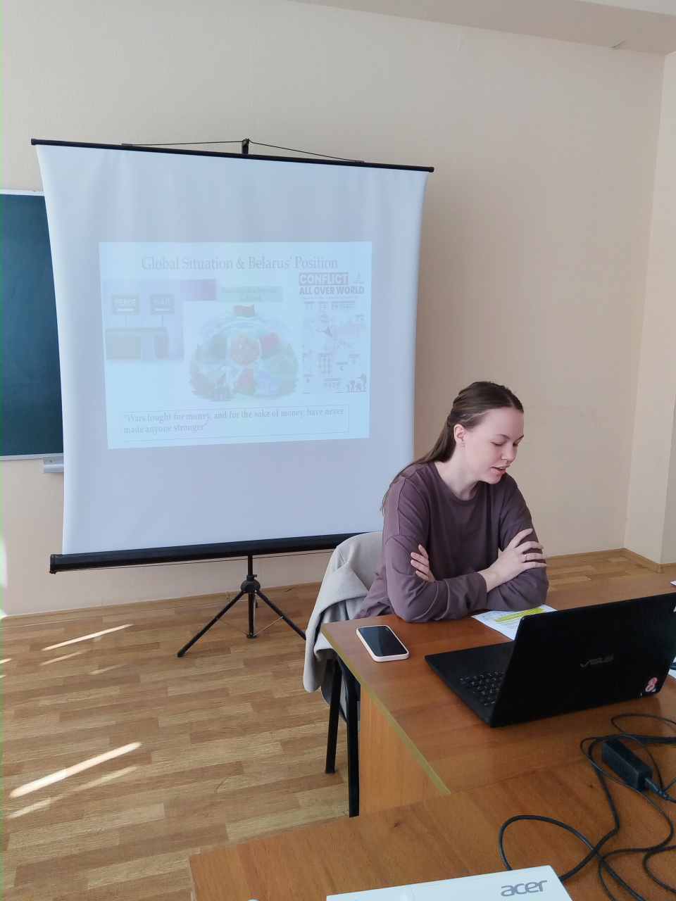 Участники выступили с презентациями речей политических лидеров, многие из которых оказывали и продолжают оказывать влияние на ход истории. Герои презентаций – А. Лукашенко, М. Тэтчер, Д. Трамп, Б. Обама, Л. да Силва, С. Берлускони, Королева Елизавета II. Темы их речей также отличались разнообразием: достижение мира и взаимопонимания между государствами, роль женщин в политике, верховенство закона, экология — все эти темы актуальны и интересны. Политики предстали живыми людьми, со своими проблемами, чаяниями и надеждами. Помимо рассказов о речах у участников была возможность послушать отрывки из речей в актерском прочтении студентов, при этом манера, язык, интонации были очень похожи на оригинальные.