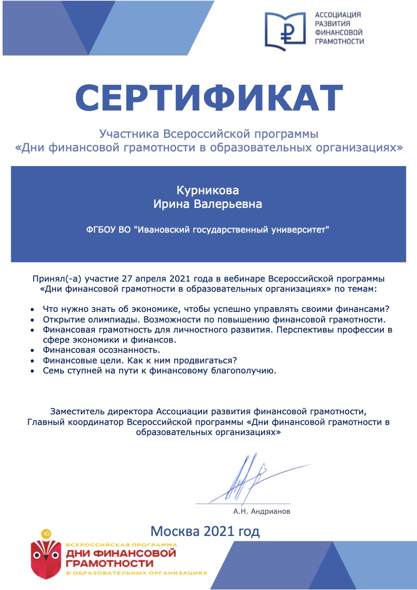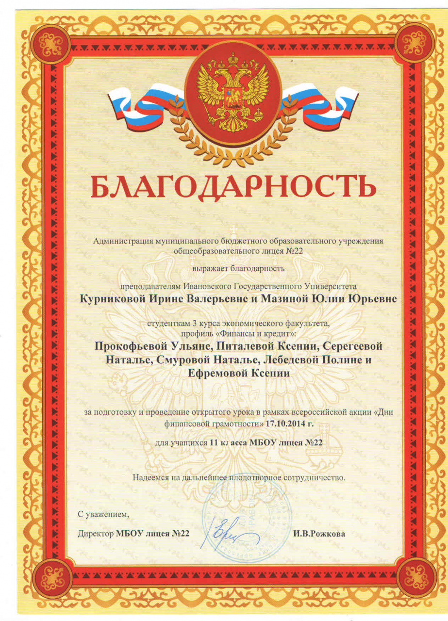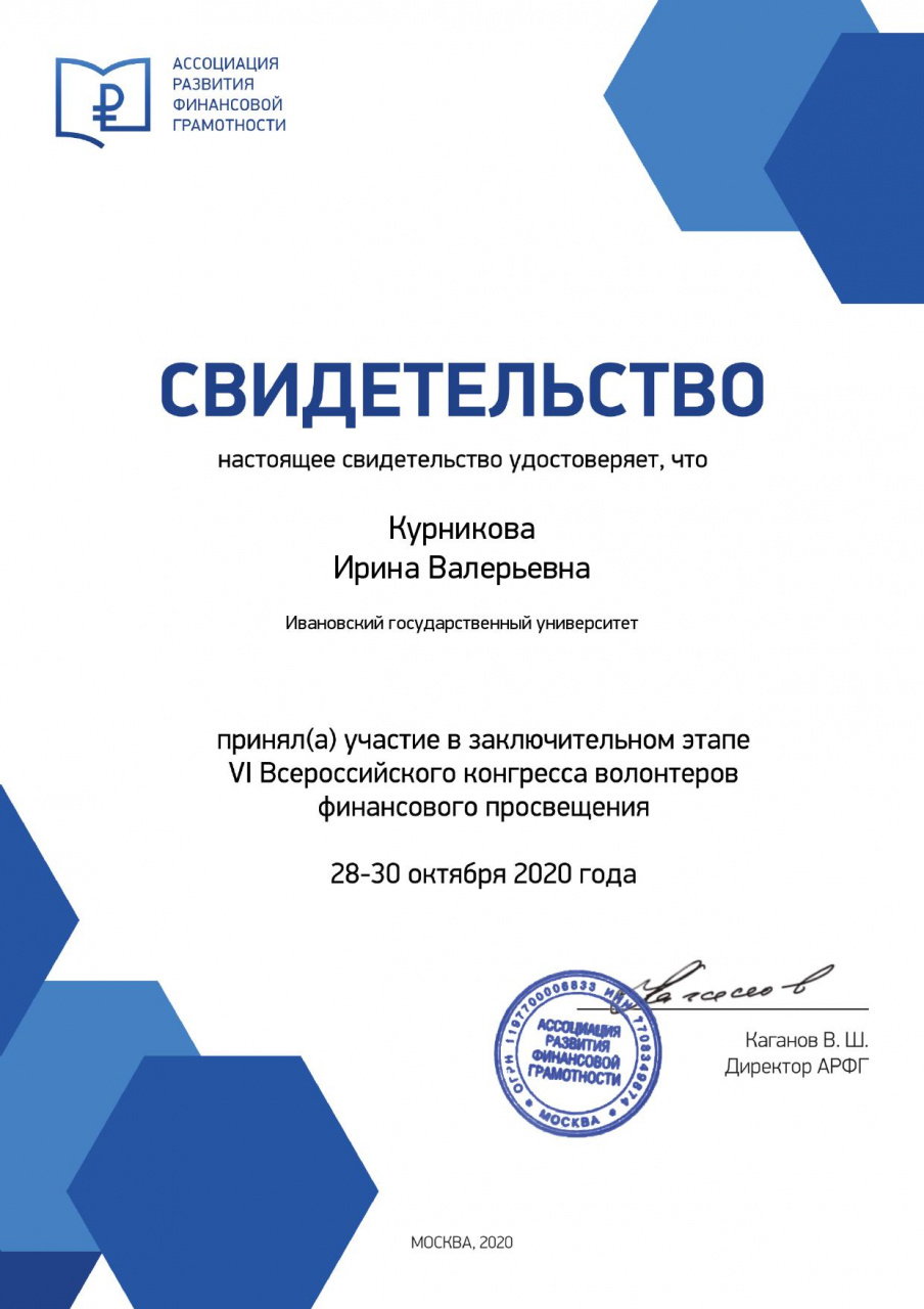 Приказ о назначении руководителя ресурсного волонтерского центра финансового просвещения ИвГУ