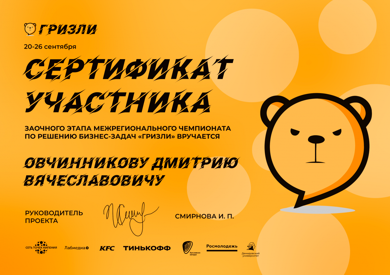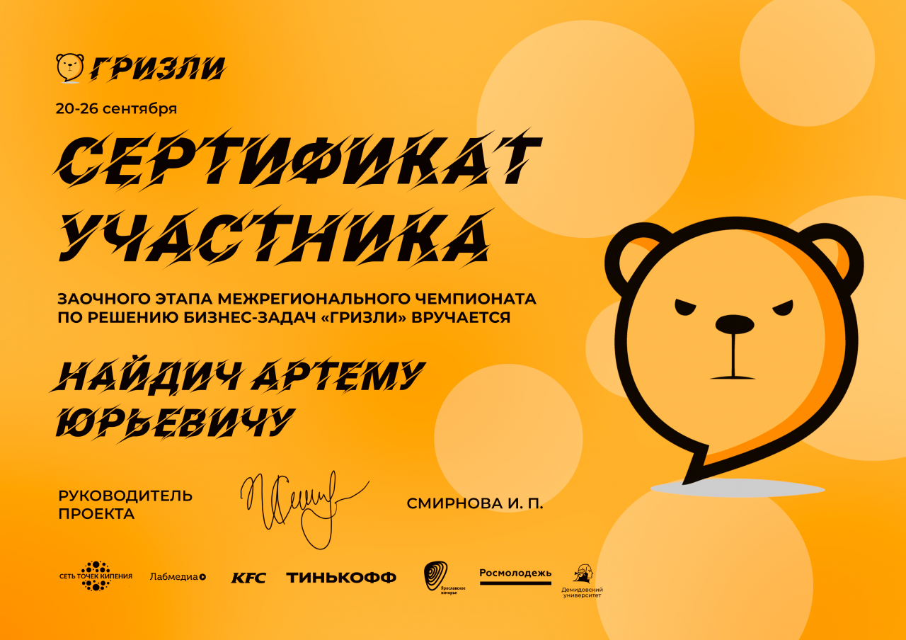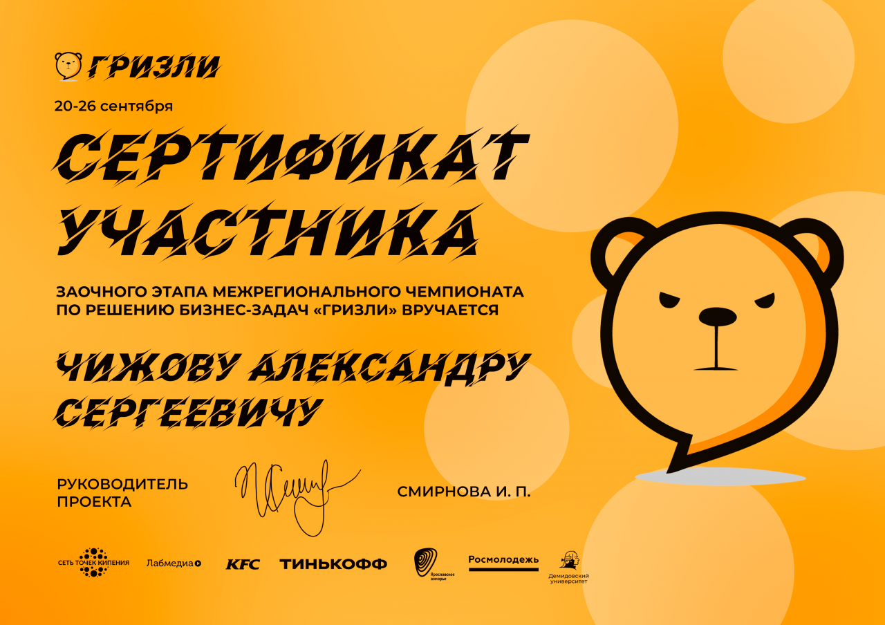 C 20 сентября по 30 октября 2021 года проходит «Гризли» – межрегиональный чемпионат по решению бизнес-задач. Его участники – граждане от 16 до 25 лет, жители Архангельской, Вологодской, Ивановской, Костромской, Московской, Тверской и Ярославской областей.