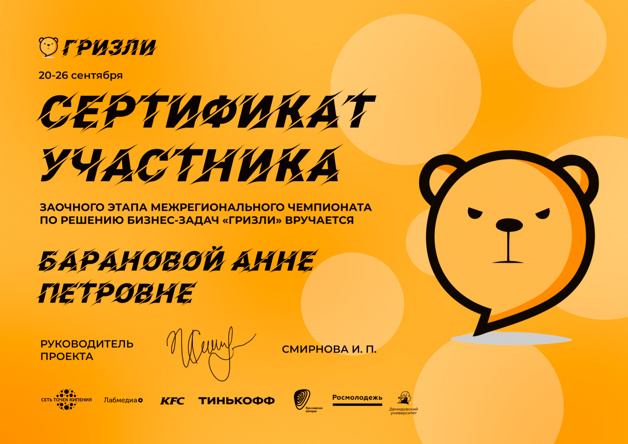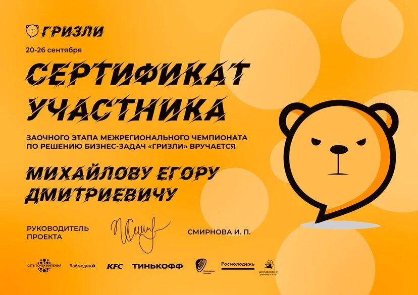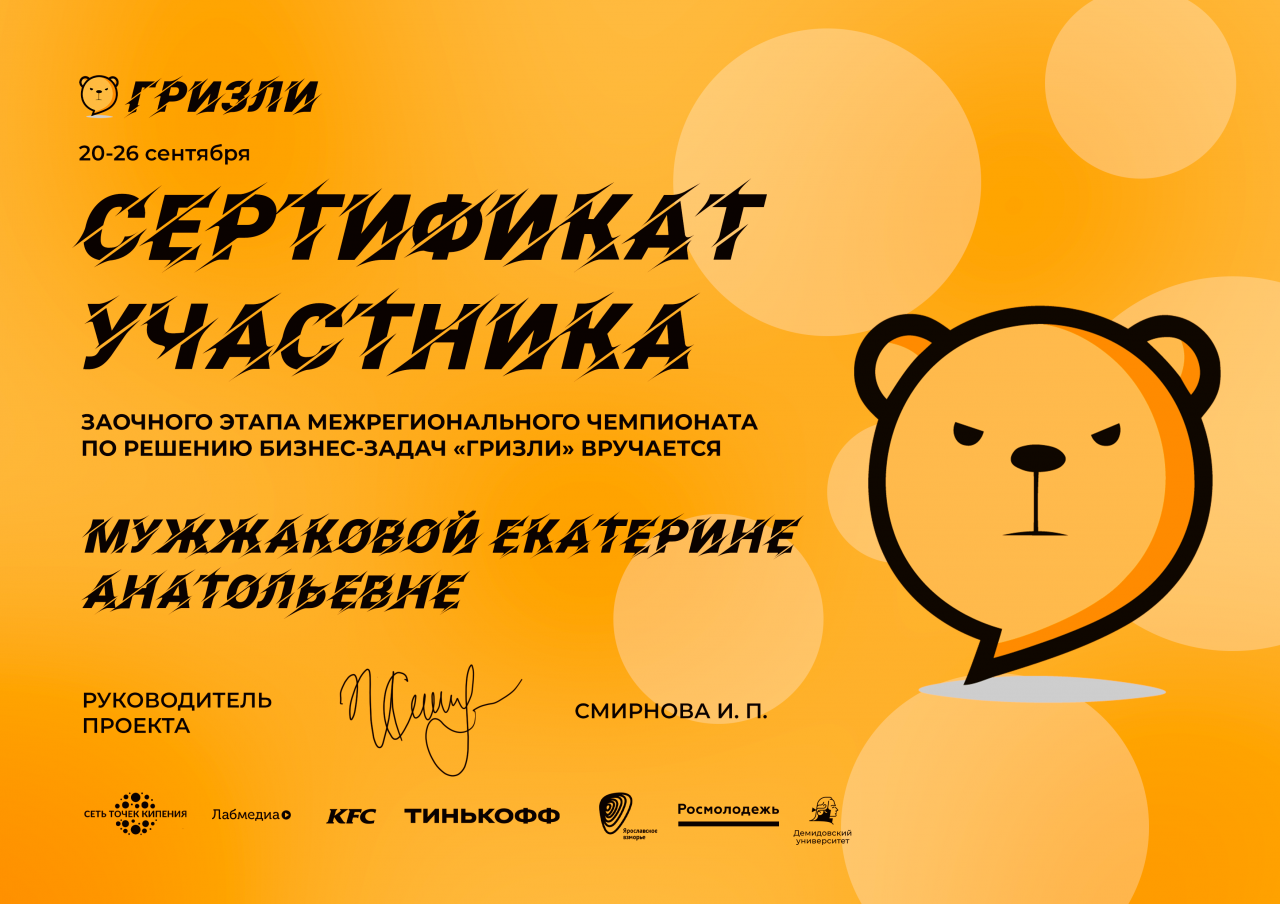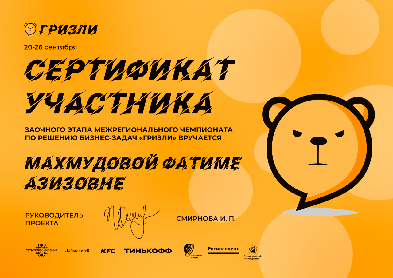C 20 сентября по 30 октября 2021 года проходит «Гризли» – межрегиональный чемпионат по решению бизнес-задач. Его участники – граждане от 16 до 25 лет, жители Архангельской, Вологодской, Ивановской, Костромской, Московской, Тверской и Ярославской областей.