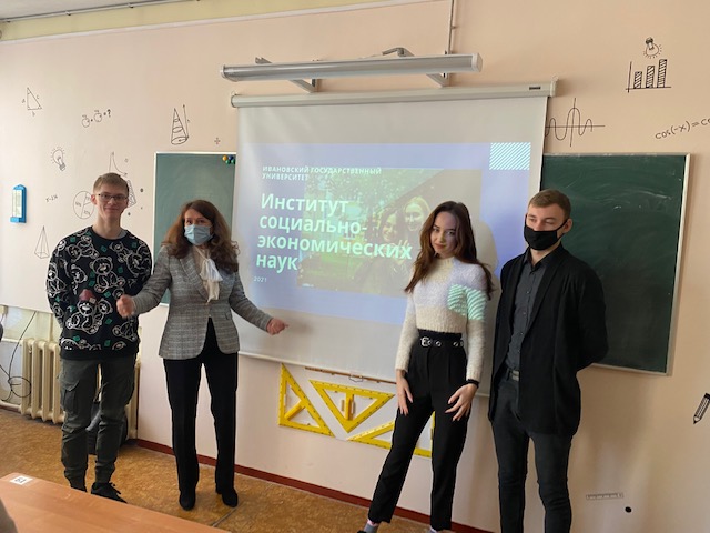 10 декабря профориентационная бригада ИвГУ, в составе директора Института социально-экономических наук Курниковой И.В. и студента 3-го курса (направление подготовки 38.03.01 Экономика, профиль «Финансы и кредит») Ярченкова Владимира, посетила гимназию № 23. Встречу определили в формате Круглого стола по актуальным вопросам современной экономики.