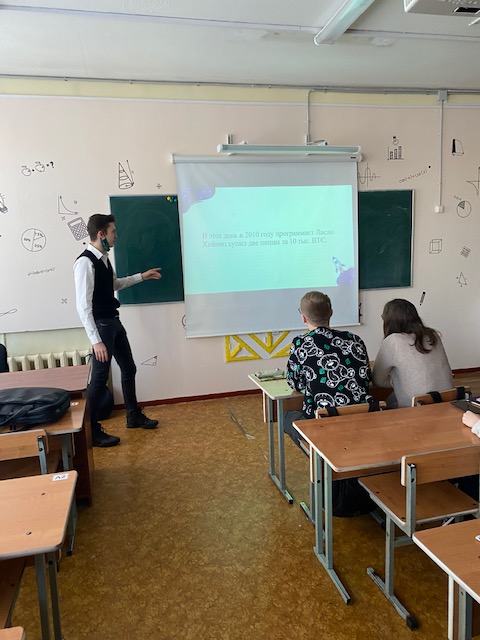 Одним из основных вопросов повестки дня Круглого стола стала финансовая грамотность. Повышением финансовой грамотности Институт занимается с 2011 года, и актуальные аспекты современного состояния финансов и финансовой системы были конкретизированы в тематике «Технология Блокчейн. Криптовалюта. МетаВселенная». Ребята с интересом поддержали диалог. Владимир Ярченков поделился с будущими абитуриентами своими знаниями в области цифровых денег. Он является активным участником финансового рынка, квалифицированным инвестором. Было интересно узнать историю появления криптовалют, оценку современного состояния рынка криптовалют, оценку финансовых рисков, связанных с майнингом Биткойна, узнать о коррекции стоимости криптовалют и прогнозах на будущее. Все обсуждаемые вопросы очень вдохновили и заинтересовали ребят из гуманитарного класса.