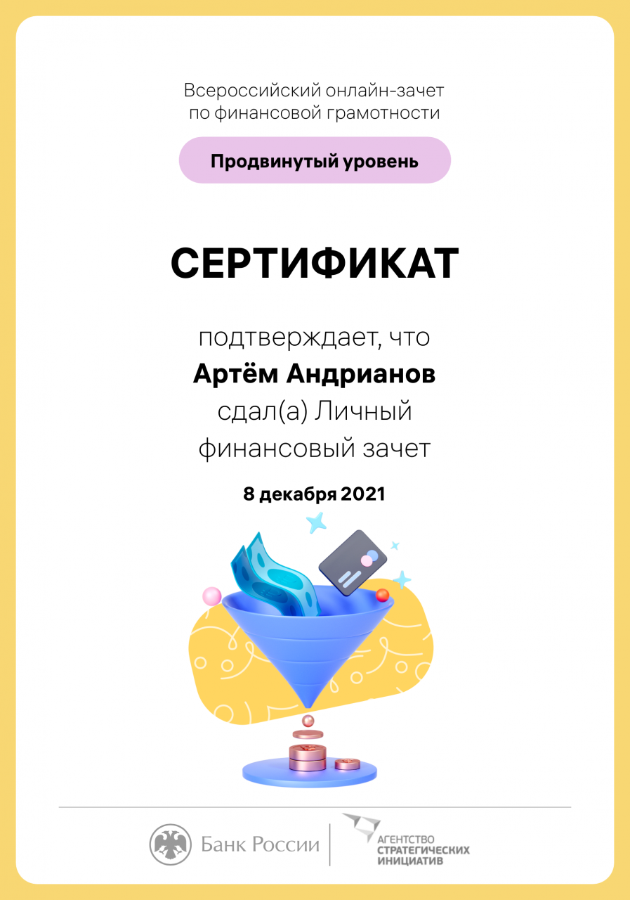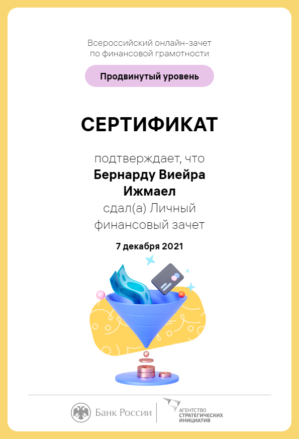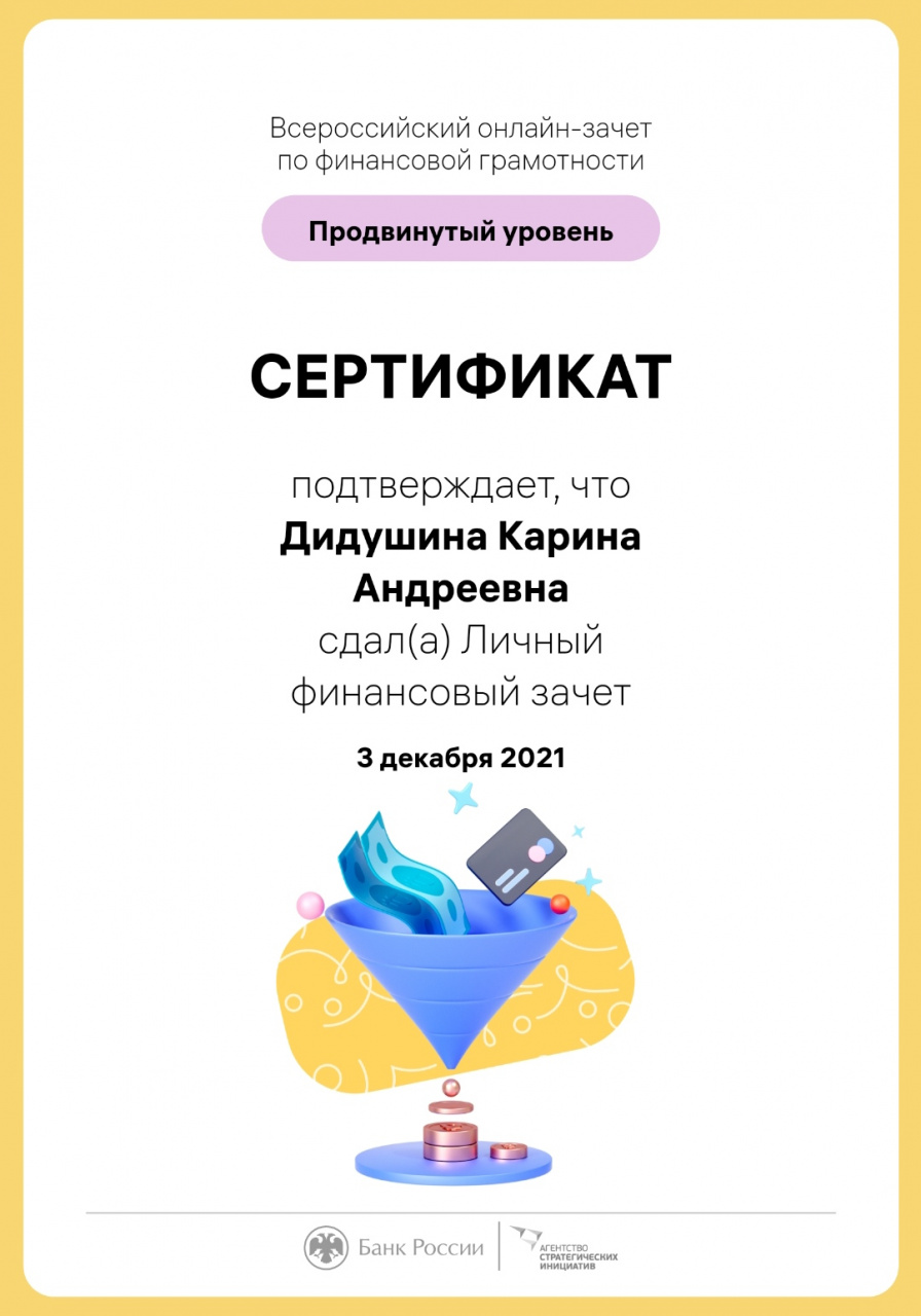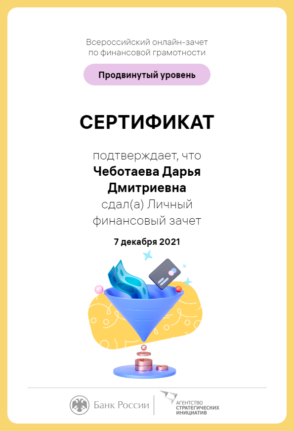 В период с 30 ноября по 16 декабря 2021 г. Банк России совместно с Агентством стратегических инициатив провел IV Всероссийский онлайн-зачет по финансовой грамотности.