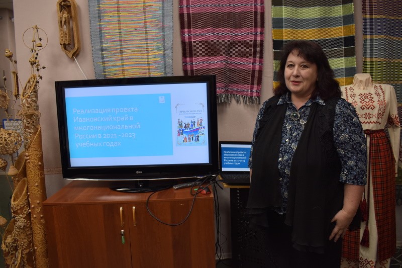 Заместитель директора по научно-методической работе областного университета непрерывного образования и инноваций Н.В. Соколовская представила новое, дополненное издание пособия для учащихся общеобразовательных школ «Ивановский край в многонациональной России», которое ориентировано на формирование у обучающихся понимания межнационального согласия как ценности современного общества. Реализация данного проекта ведется в нашей области с января 2017 г.; накопленный опыт представляет интерес и для других регионов России.