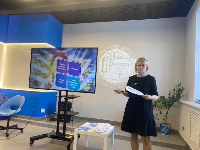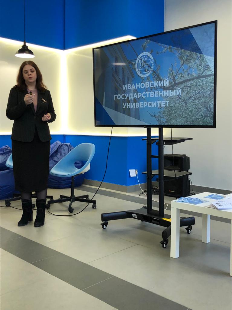 С приветственным словом выступила проректор по исследовательской и проектной деятельности Смирнова И.Н. Она рассказала об истории создания ИвГУ, об изменениях в структуре образовательной организации и возможностях участия студентов университета в научных, общественных, культурно-просветительских, волонтерских и иных мероприятиях. Далее заместитель ответственного секретаря приемной комиссии ИвГУ Буданова И.А. познакомила слушателей с правилами приема в 2022 году.