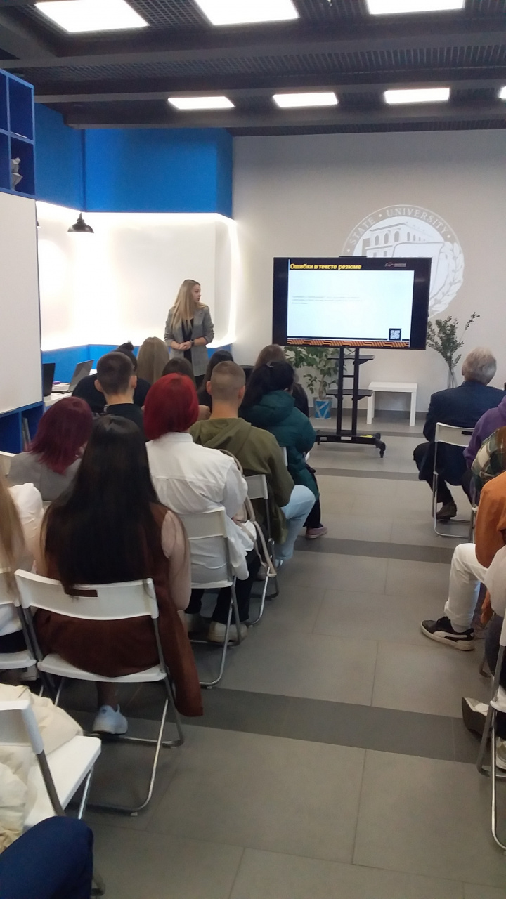 Основой мероприятия был мастер-класс от специалиста по подбору персонала Крицкой Анны Михайловны. Очень подробно она рассказала об особенностях составления резюме, что необходимо как нашим будущим специалистам, так и студентам при поиске работы. Ребята задавали вопросы; студенты четвертого курса хорошо ориентировались в данной теме, т.к. многие работают. Отдельное спасибо второму курсу за красивое поздравление преподавателей кафедры!