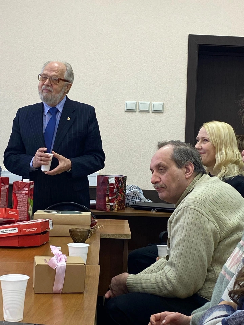 Профессор Еремин Виктор Николаевич поздравил ребят и рассказал о традициях празднования, о собственном опыте и необходимости именно здесь и сейчас заводить друзей на всю жизнь. Было очень интересно, познавательно и радостно! Также доцент Ревякин Евгений Станиславович помогал ребятам вспомнить авторов произведений и завершить фразы в стихах. Ребята давали прекрасную обратную связь, поздравляли преподавателей, желали счастья, добра и мира!