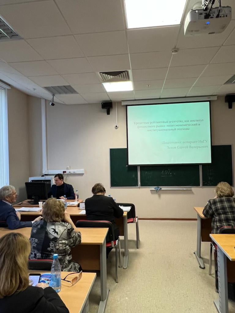В рамках секции 5 успешно выступил с докладом аспирант 3-го года обучения кафедры экономической теории, экономики и предпринимательства ИвГУ Сергей Валерьевич Зенов (науч. рук. д-р экон. наук, доцент, зав. кафедрой ЭТЭиП Е.Е. Николаева). Тема выступления «Кредитные рейтинговые агентства как институт финансового рынка: политико-экономический и институциональный подходы» вызвала интерес участников.