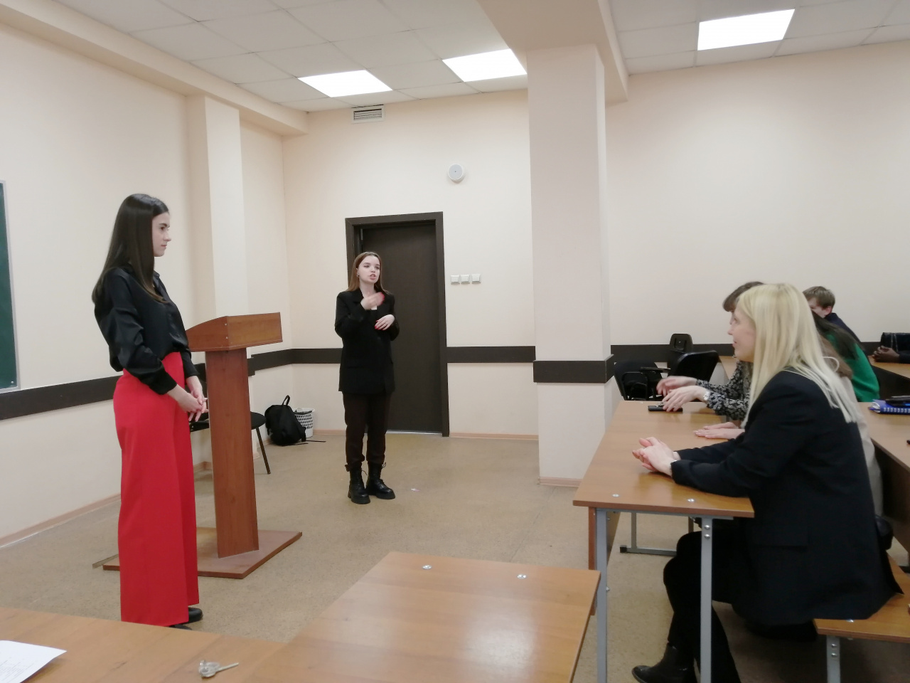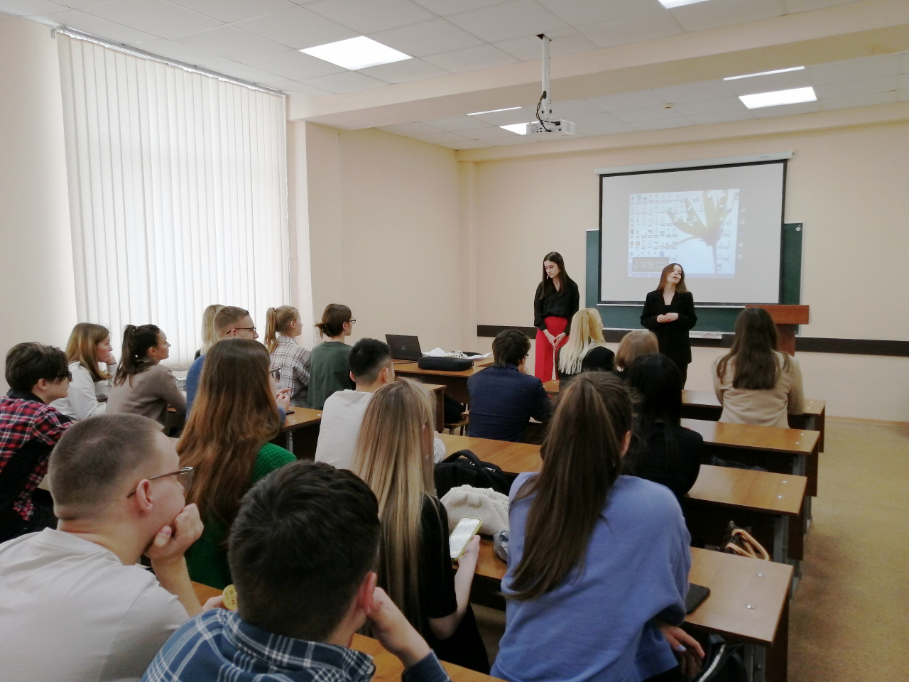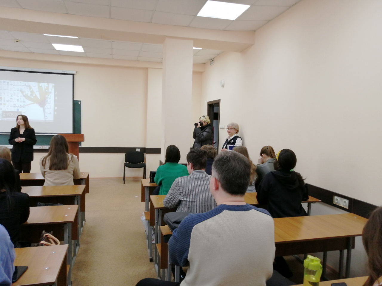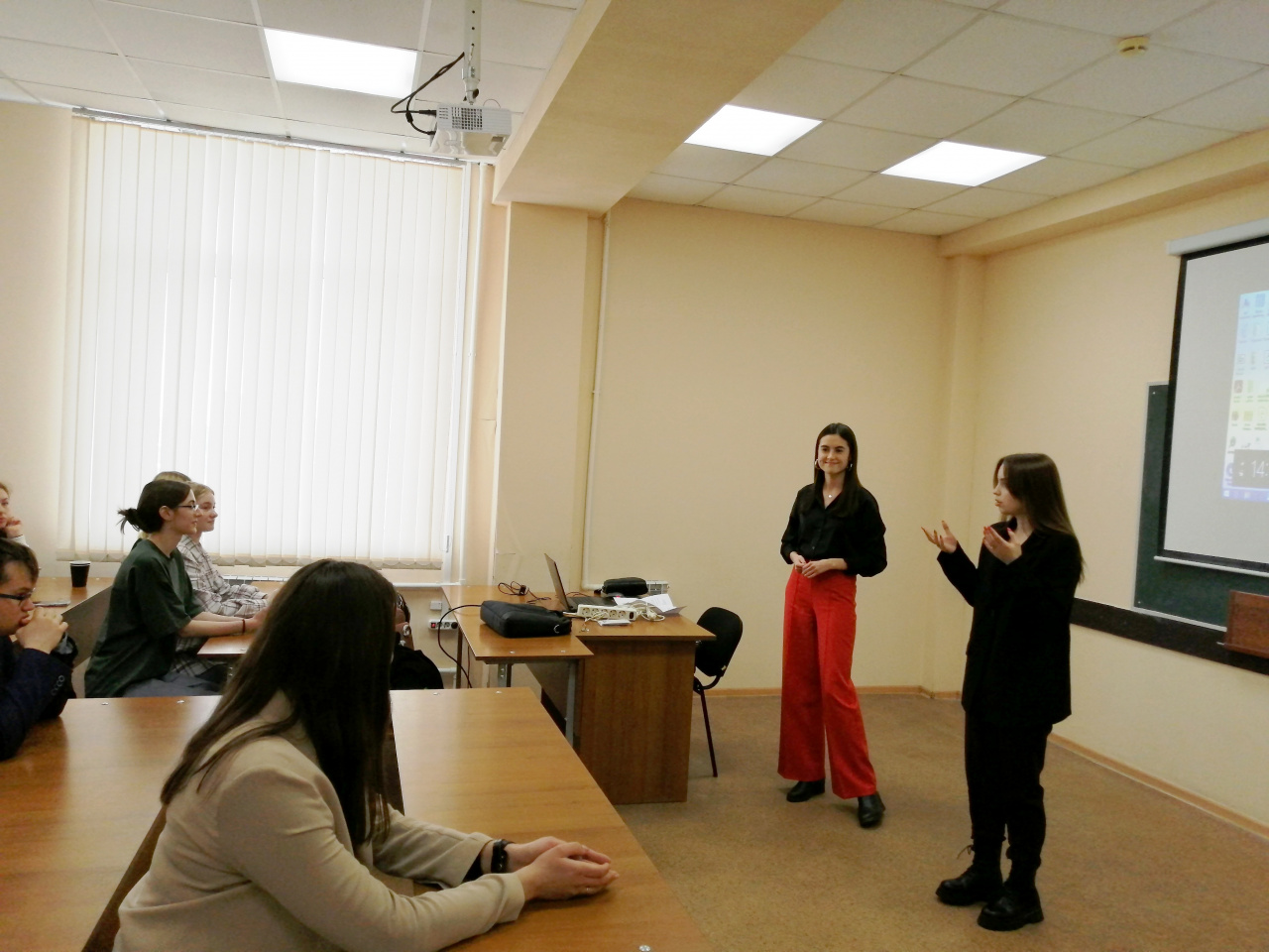 На встрече ведущий специалист по внутренним коммуникациям и PR Евдокимова Ольга рассказала о компании и о возможностях при трудоустройстве, руководитель группы в отделе РСБУ и МСФО Влайку Ана – о работе с программными средствами в компании и о возможностях обучения. Специалист по обучению Козырева Анастасия рассказала о проектной деятельности в компании, о ее корпоративных традициях.