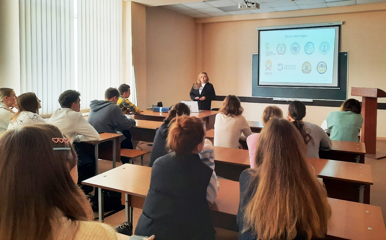 Специалист по обучению и развитию Елена Ловцова (выпускница ИвГУ) раскрыла студентам возможности справочно-правовой системы «КонсультантПлюс» для учебы и повседневной жизни. Помимо этого, Елена рассказала о многих других форматах взаимодействия: карьерные мероприятия, стажировки, прохождение практики и, конечно, конкурс «Образование и твоя карьера».