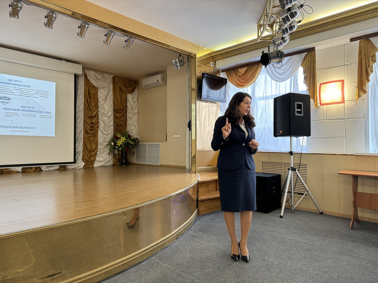 Ирина Валерьевна встретилась с выпускниками и рассказала про наш университет, затронув его исторические страницы, возможности для абитуриентов и образовательные программы ИСЭН, и совместно с Екатериной Мужжаковой провела небольшой квиз для закрепления усвоенной информации.
