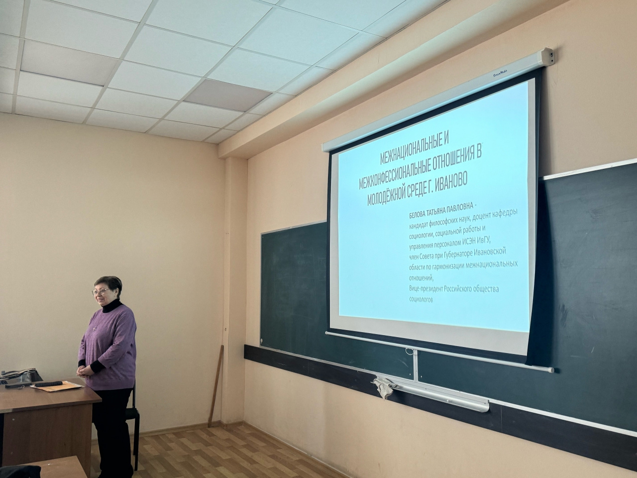 15 февраля 2024 года в ИСЭН состоялась лекция доцента кафедры социологии, социальной работы и управления персоналом доцента Беловой Татьяны Павловны на тему «Межнациональные и межконфессиональные отношения в молодежной среде г. Иваново».