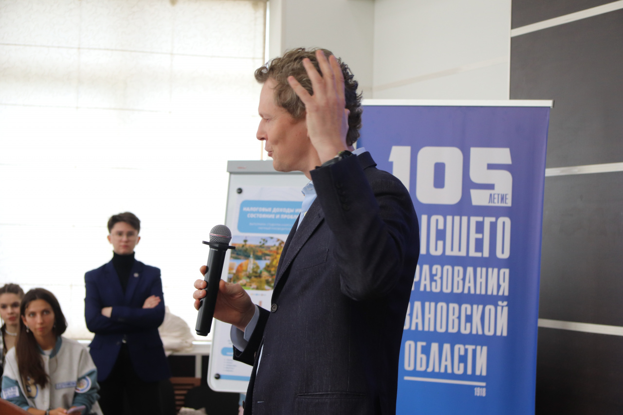 На встрече присутствовал ректор Алексей Малыгин, директор ИСЭН Ирина Курникова, преподаватели и студенты образовательных программ «Финансы и кредит», «Экономика» и «Менеджмент» Института социально-экономических наук ИвГУ.