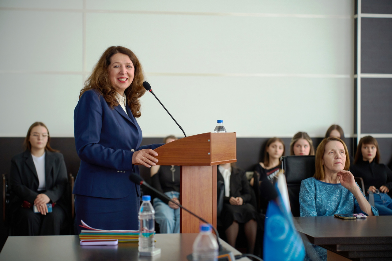 Ирина Валерьевна Курникова, директор Института социально-экономических наук и руководитель образовательной программы «Финансы и кредит», открыла работу секции, поприветствовала участников и пожелала удачи студентам в конкурсе на лучшую научную работу 2025 года.