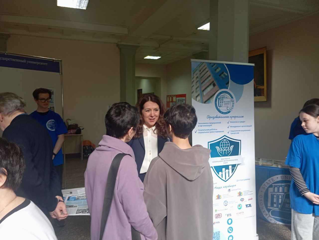 Огромную помощь и поддержку в проведении Дня открытых дверей оказали волонтеры – студенты ИСЭН (Полина Николаенко, Анна Романова, Михаил Творогов), которые делились с абитуриентами своими впечатлениями о студенческой жизни, объясняли, почему выбрали Ивановский государственный университет и образовательные программы института социально-экономических наук.