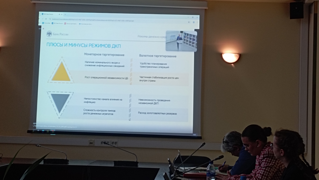 С результатами исследовательских работ в области денежно-кредитной политики со стороны научного сообщества выступили представители Брянского филиала РАНХиГС и Белгородского государственного национального исследовательского университета, которые поделились итогами своих научных изысканий по актуальным проблемам макроэкономического равновесия и инфляционных ожиданий населения.