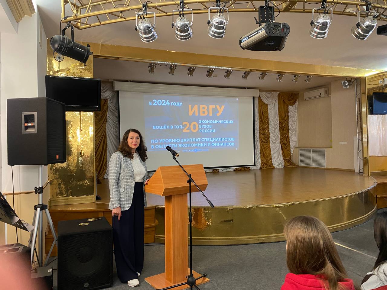 13 ноября студенты Института социально-экономических наук во главе с директором И. В. Курниковой представили социальный проект Ресурсного волонтерского центра финансового просвещения ИвГУ «Основы финансовой грамотности». Проект предусматривает финансовое просвещение отдельных категорий населения: участников СВО, лиц с ОВЗ и инвалидностью, многодетных семей.