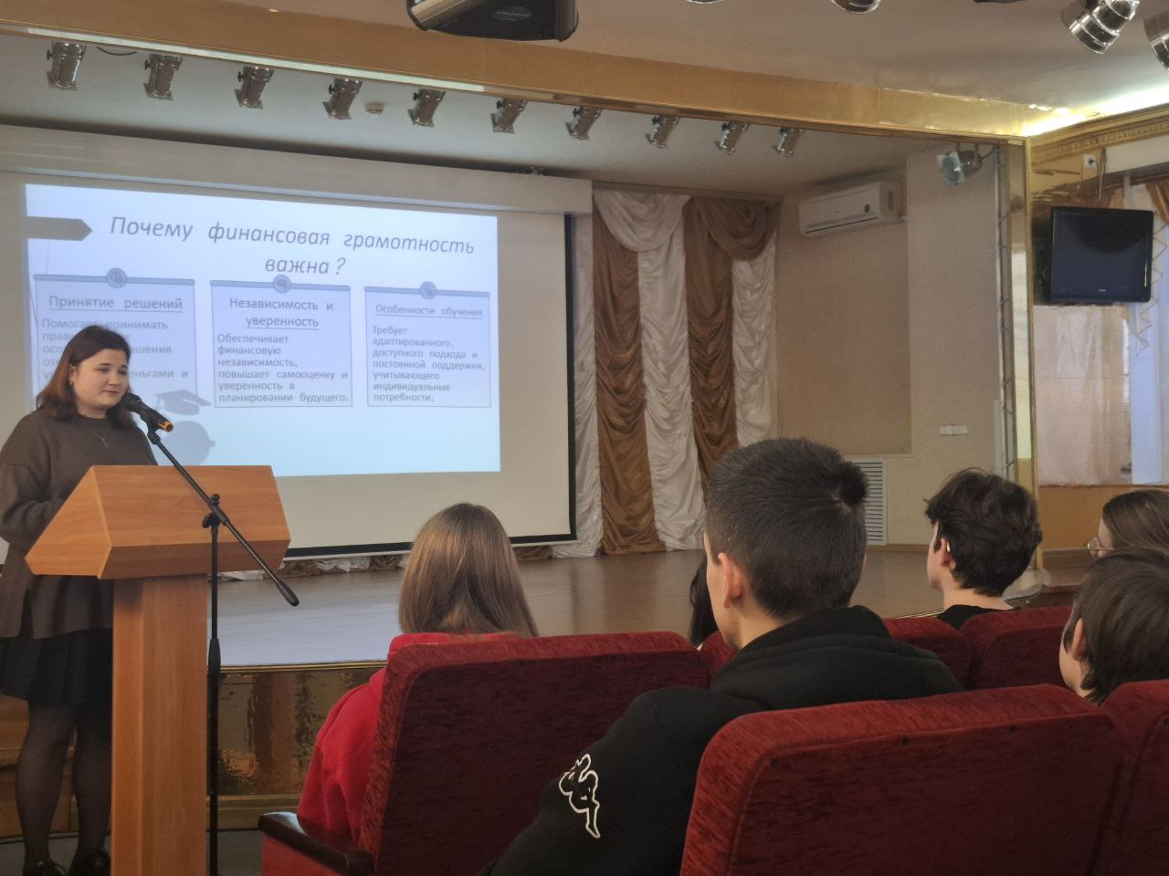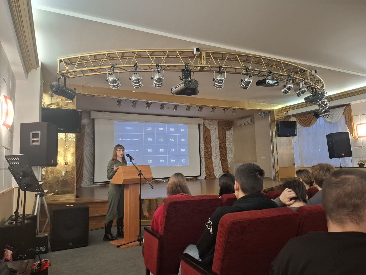 На мероприятии, в актовом зале, присутствовали студенты выпускных курсов вместе с преподавателями, кураторами и воспитателями. Аудитория очень благодарная - ребята активно задавали вопросы и уточняли информацию, которую мы предоставили. Лекция-проект была проведена Смирновой Елизаветой, студенткой 2 курса образовательной программы «Социология социальных процессов». При подготовке материала, было учтено быстро меняющиеся сегодня нормативно-правовое регулирование в сфере финансовой поддержки отдельных категорий граждан, озвучены аспекты финансовой безопасности, проведено небольшое исследование на тему актуальных проблем молодых людей в сфере финансов. Подцветовой Ульяной и Линьковой Софией, студентами 2 курса этой программы, проведена игра-викторина по вопросам финансовой грамотности, за которую победившая команда получила значки и наклейки на телефон с символикой Ивановского государственного университета.