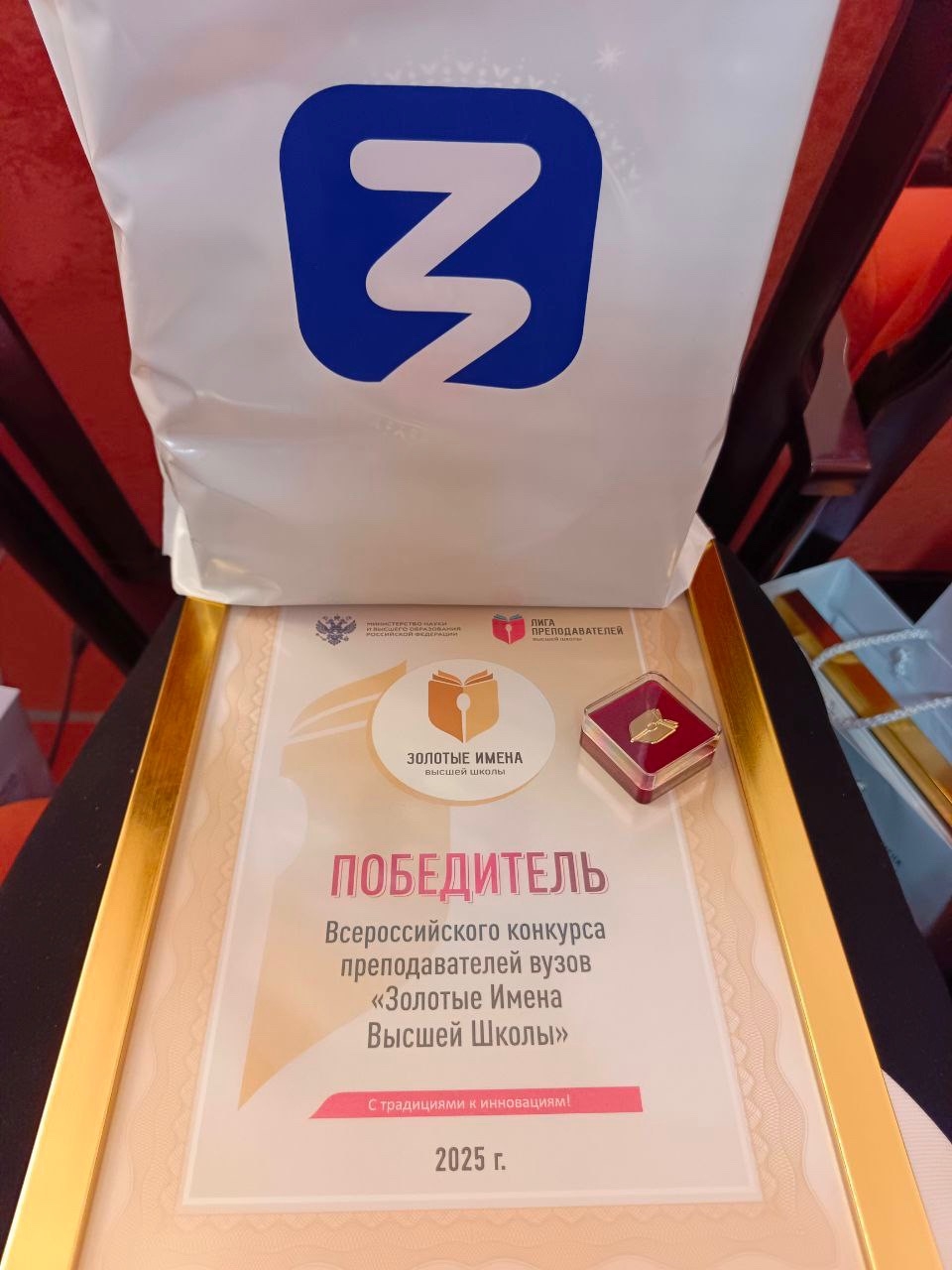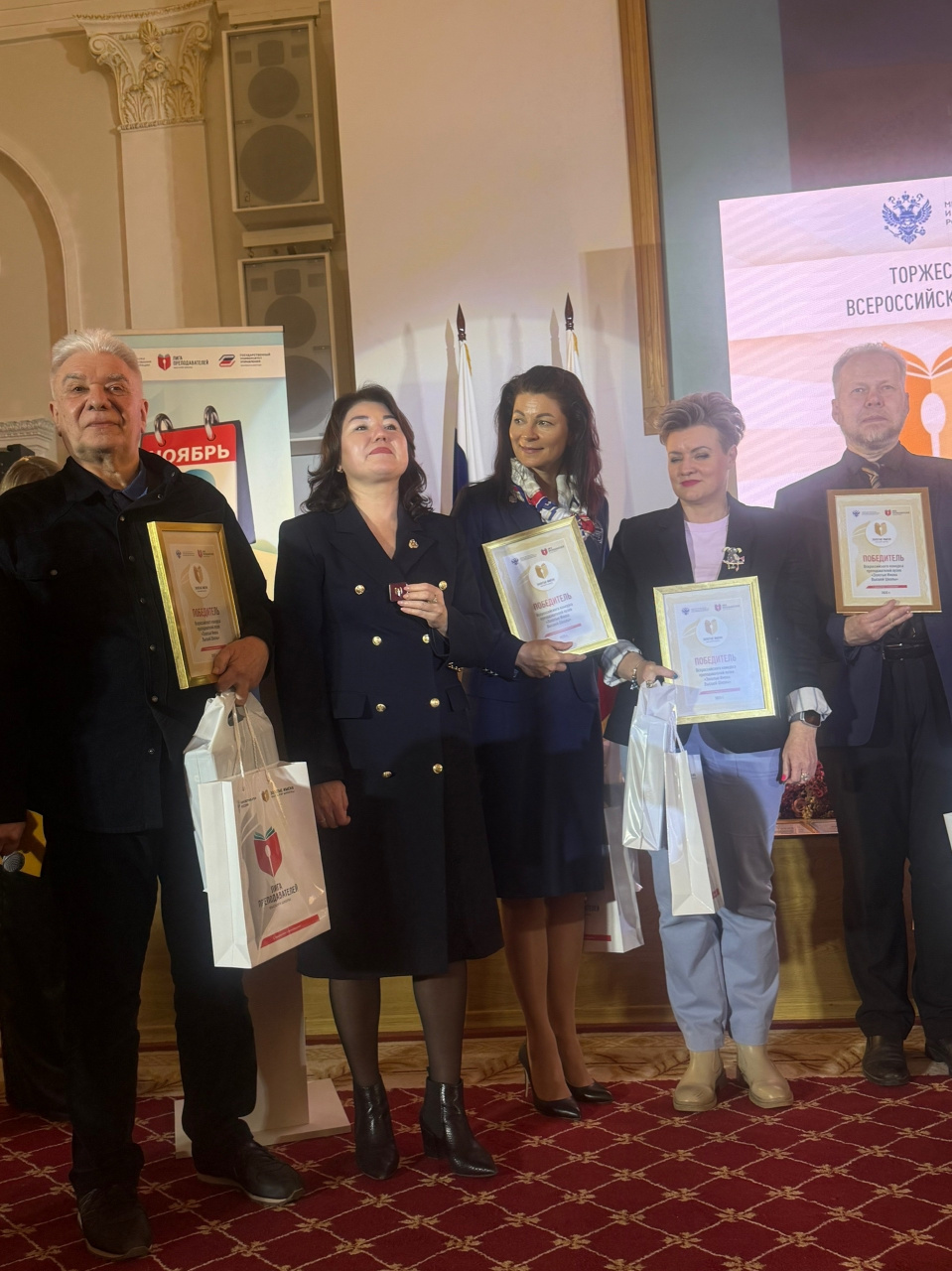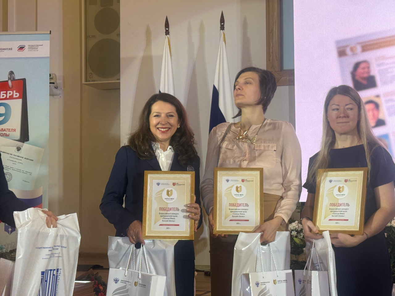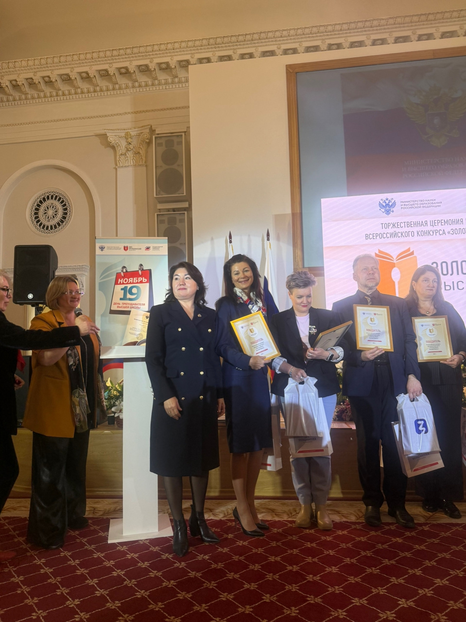 Кульминацией форума стала торжественная церемония награждения, которая прошла 19 ноября. В Актовом зале здания Минобрнауки России собрались руководители ведущих вузов, представители органов государственной власти и академическая элита страны. В торжественной обстановке Маник С.А. и Курникова И.В. были отмечены как победители Всероссийского конкурса «Золотые Имена Высшей Школы». Имена наших преподавателей занесены в Книгу Почета преподавателей вузов Российской Федерации.