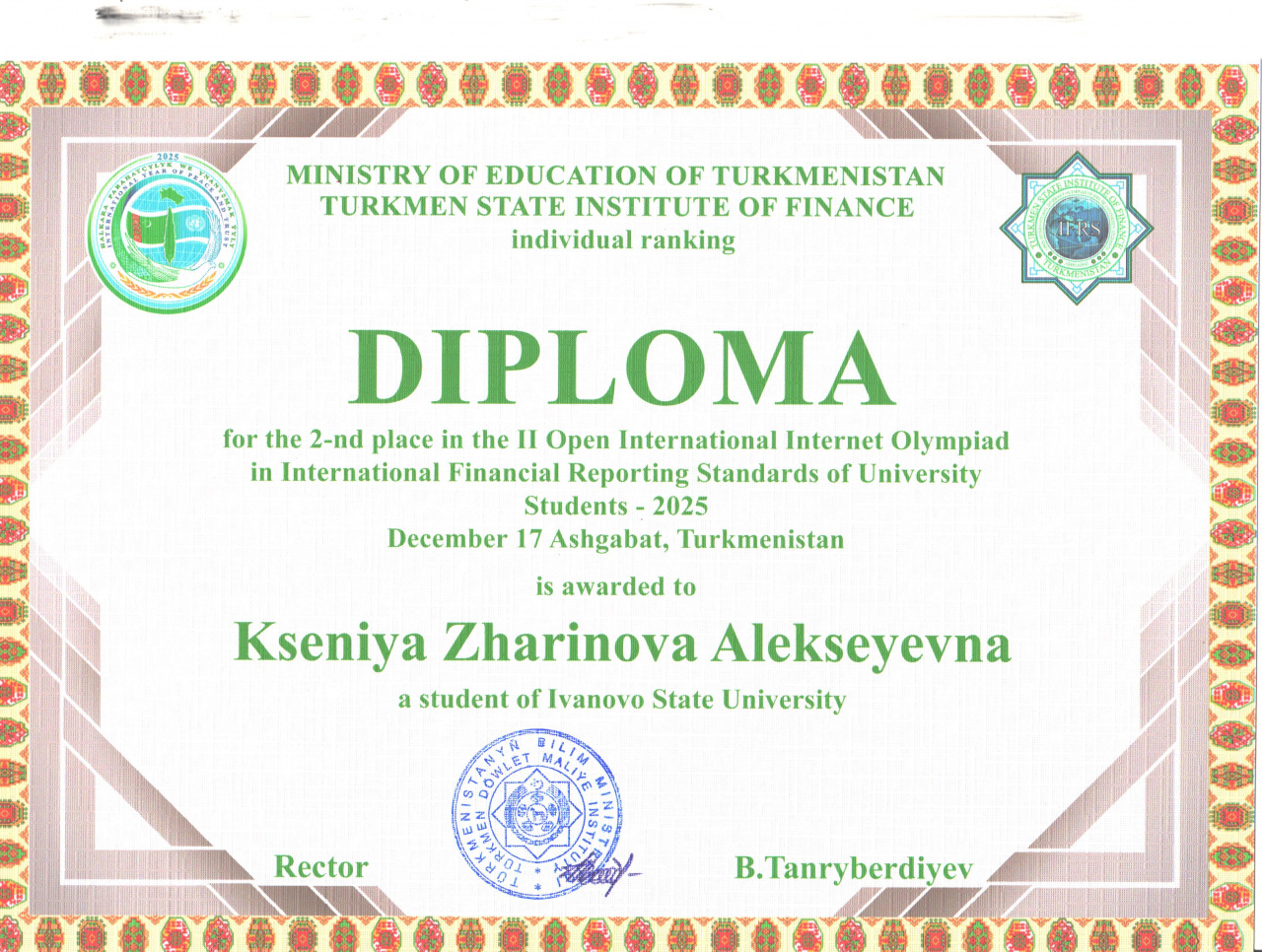 Результаты, полученные от ректората Туркменского государственного института финансов в канун Нового года, впечатляют!