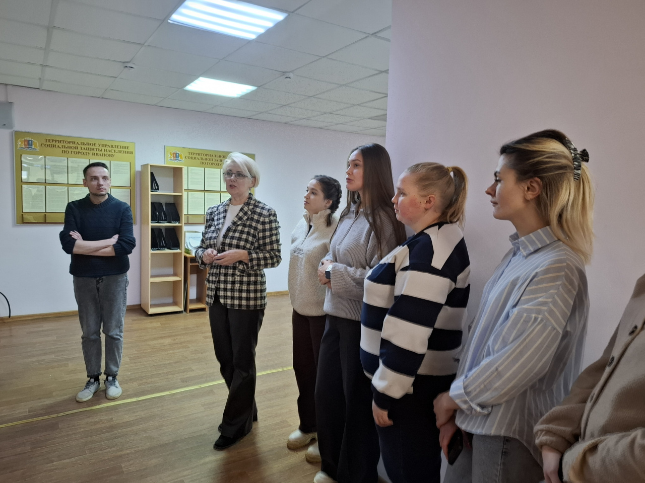 18 февраля 2026 года студенты Института социально-экономических наук ИвГУ, обучающиеся на 4 курсе бакалавриата (направление подготовки «Социальная работа), приняли участие в профориентационном мероприятии, организованном на базе Территориального управления социальной защиты населения по городу Иванову.