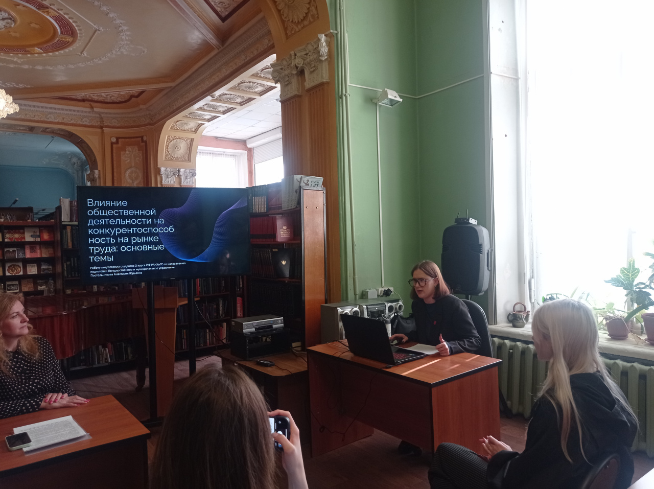 31 марта в филиале Центральной универсальной научной библиотеки на ул. Дзержинского 36/8 прошло очередное заседание городского межвузовского семинара «Вуз – Библиотека», который работает с 2003 года. В этот раз тема 29-го семинара была «Карьера молодежи – через общественную деятельность». В качестве приглашенных гостей (докладчиков) выступили: Протасевич Светлана Александровна – Уполномоченный по правам ребенка в Ивановской области, Орлова Светлана Сергеевна – председатель Ивановской областной общественной организации помощи многодетным семьям «МногоДетки», член Общественной палаты и председатель Российского детского фонда Ивановской области, Анастасия Юрьевна Постельникова – руководитель проектов регионального отделения Общероссийского общественно-государственного объединения детей и молодежи Ивановской области. В семинаре приняли участие более 40 студентов из двух ивановских вузов: Ивановского госуниверситета – 1 курса направления подготовки «Юриспруденция» и «Экономика» и Президентской академии (РАНХиГС, Ивановский филиал) – 3 курса направления подготовки «Государственное и муниципальное управление».