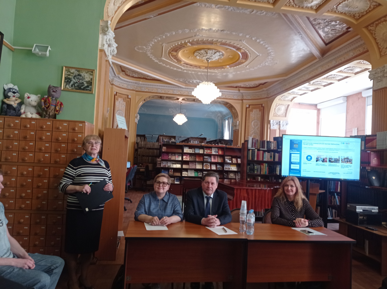 С приветственным словом выступил директор ЦУНБ Можжухин Валерий Викторович. Он рассказал о богатых фондах Центральной универсальной научной библиотеки (ЦУНБ), о высокой востребованности ее книг, журналов, газет для читателей, исследователей, в том числе студентов и преподавателей.