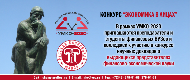 В рамках подготовки ко Второй Уральской молодежной конференции «Современные финансы и цифровая экономика» (УМКО-2020) Организационным комитетом конференции на базе проекта «Русская Банковская Школа» объявляется конкурс научных докладов «Экономика в лицах».