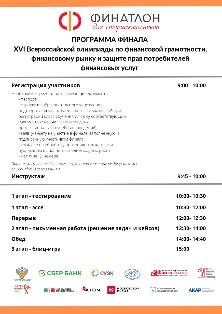 XVI Олимпиада с 2020–2021 года получила новое сокращенное название «Финатлон для старшеклассников». Олимпиада ежегодно входит в Перечень олимпиад школьников, утвержденный Приказом Министерства науки и высшего образования РФ.