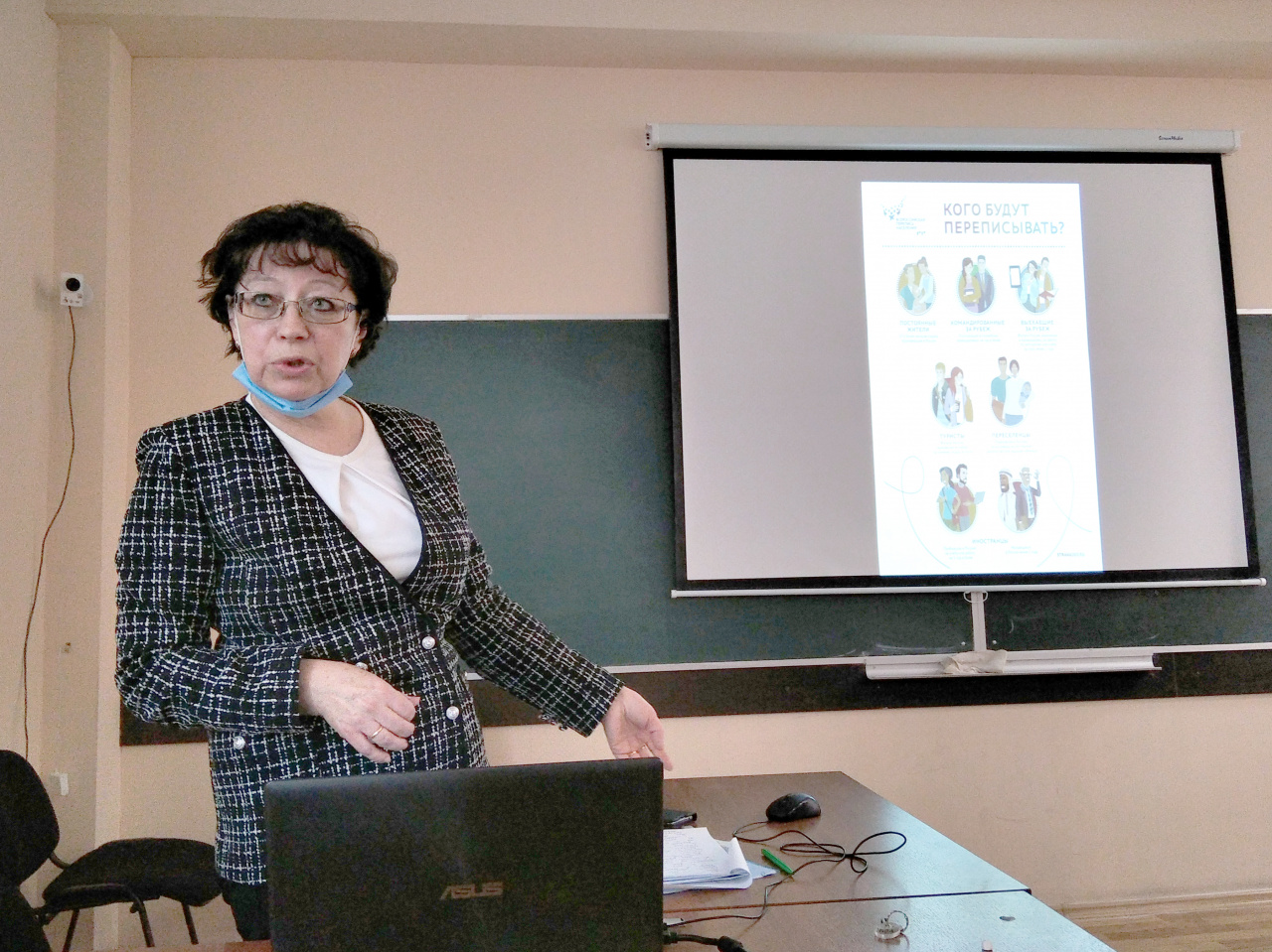 Основным информационным ресурсом Всероссийской переписи населения является сайт https://www.strana2020.ru/. Там подробно освещены вопросы о порядке и сроках проведения переписи, видах переписных листов. В 2021 году впервые можно будет принять участие в переписи через интернет, с помощью портала «Госуслуги». Важным этапом в организации и проведении переписи является подбор и подготовка переписчиков, большую часть которых традиционно составляют студенты. В завершение встречи Светлана Владимировна ответила на вопросы, касающиеся участия в переписи иностранных граждан, условий работы переписчиков, деталей фиксации полученной в ходе переписи информации.
