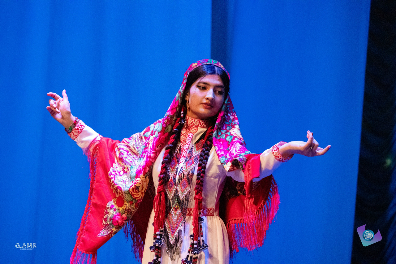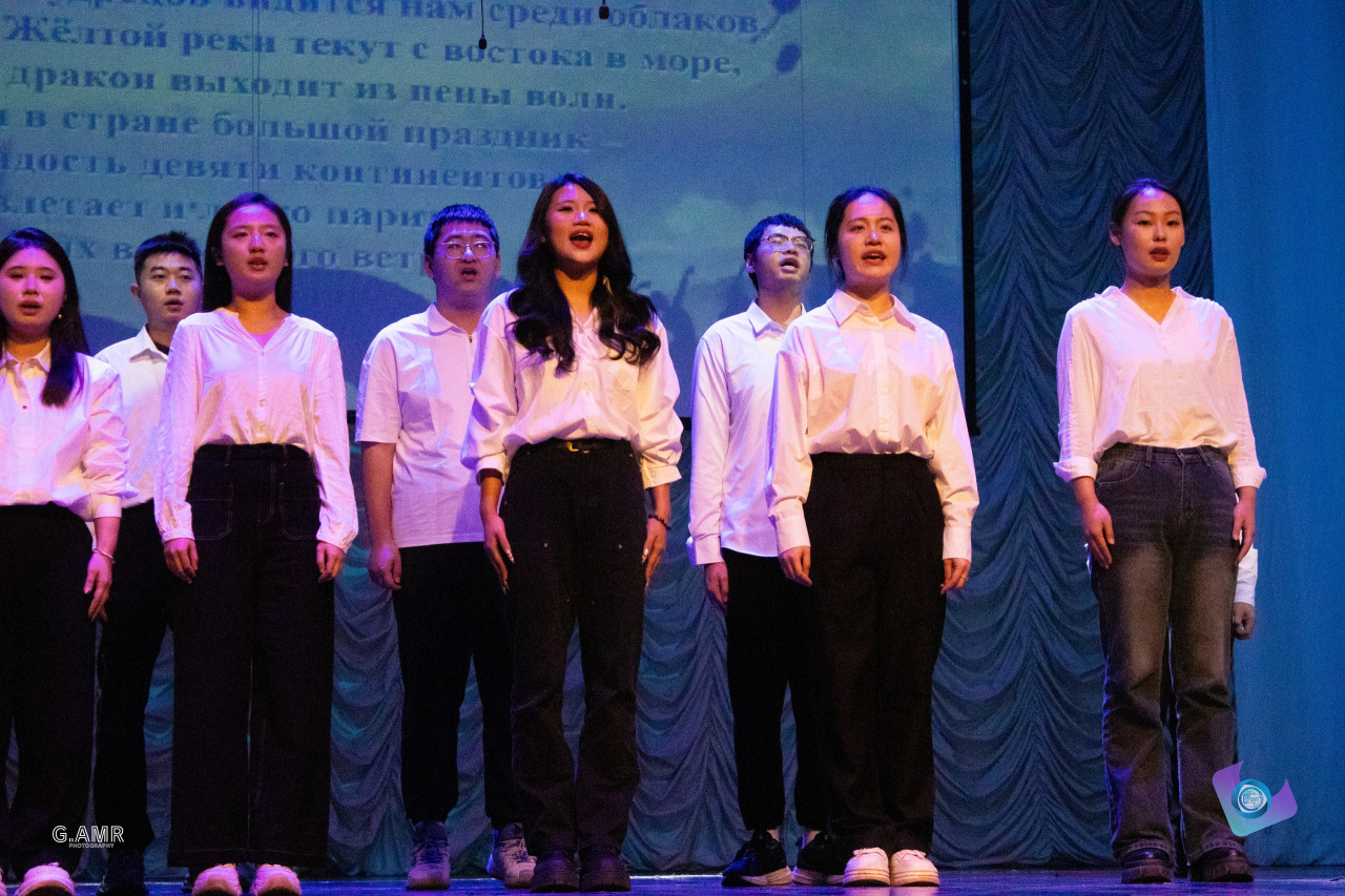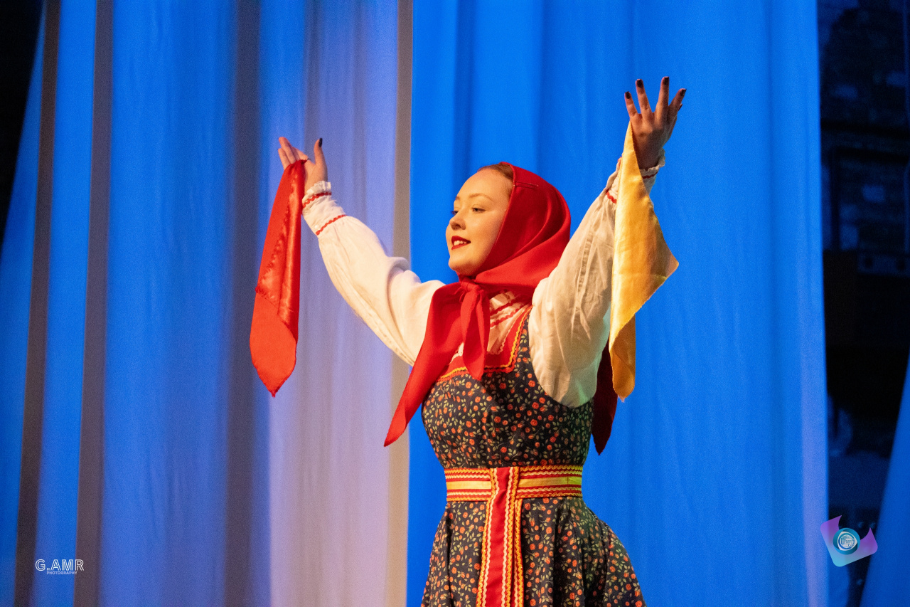 Весь вечер на сцене звучали песни на разных языках и национальные танцы.