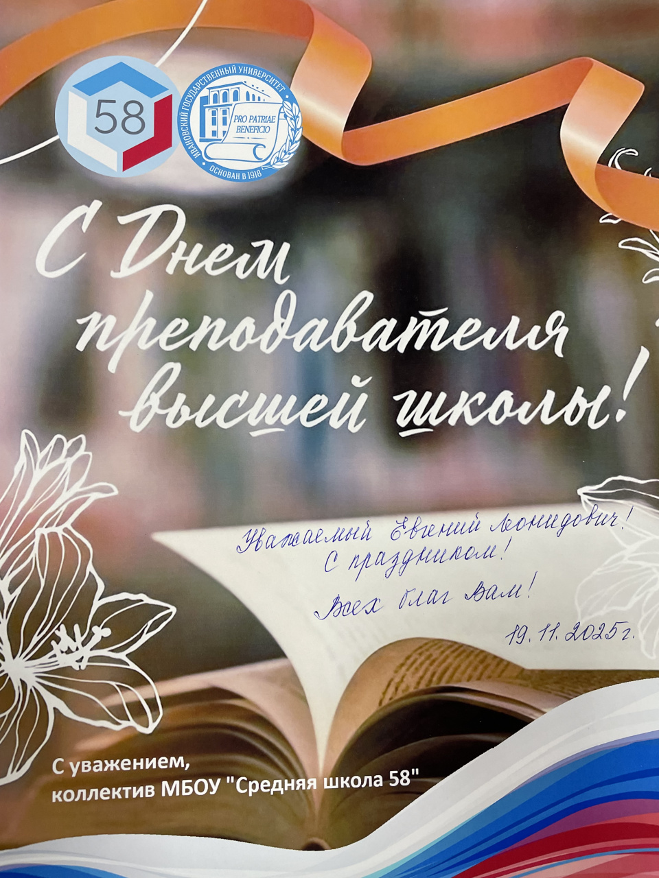 19 ноября 2025 года, в День преподавателя высшей школы, начался «месячник» выступлений ведущих преподавателей юридического факультета нашего вуза перед учителями и учащимися 10–11 классов Муниципального бюджетного общеобразовательного учреждения (МБОУ) «Средняя школа № 58» и близлежащих школ областного центра.